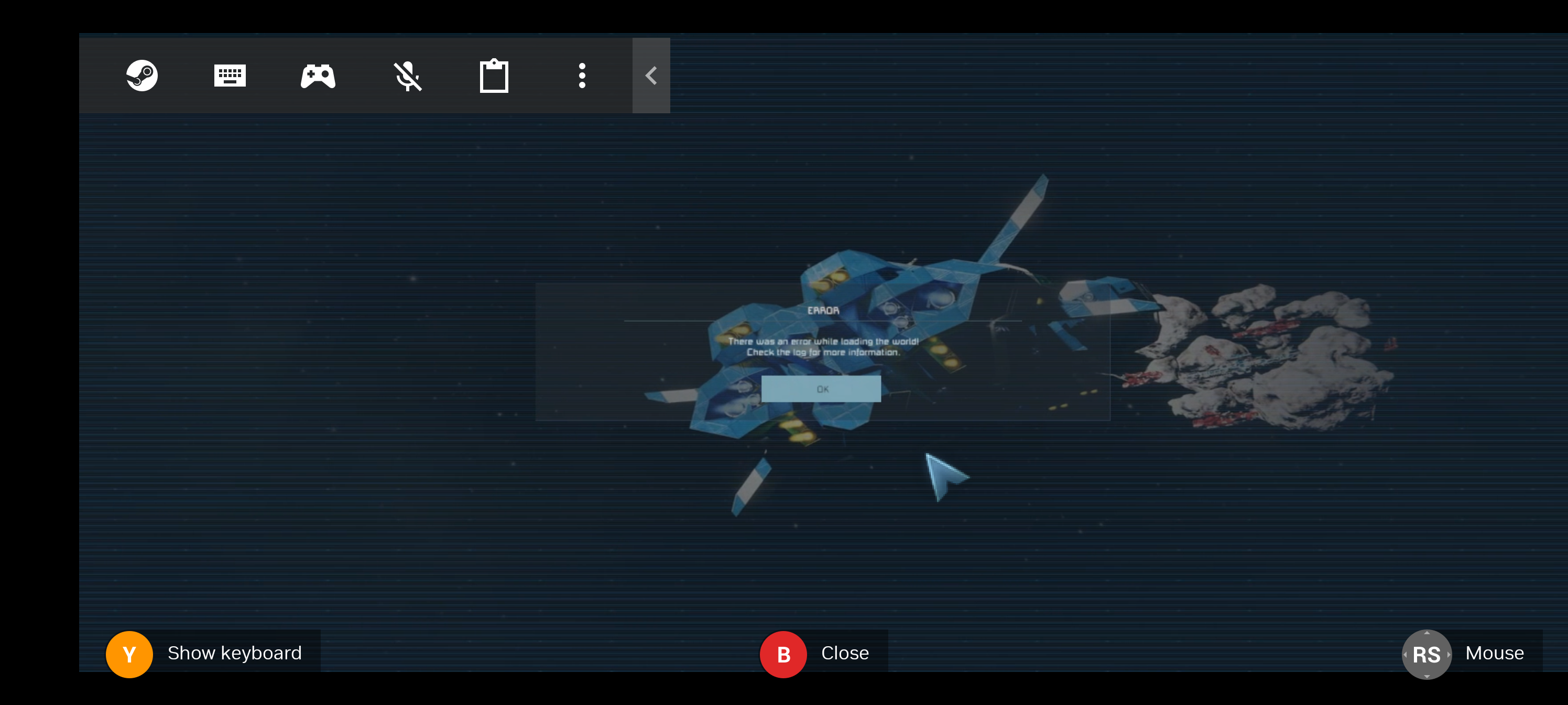 When starting any new SE game in Geforce Now, or trying to load an existing game, the loading screen reaches ~90% before a popup appears with the word "Unloading", followed by the attached popup stating "There was an error loading the world!"