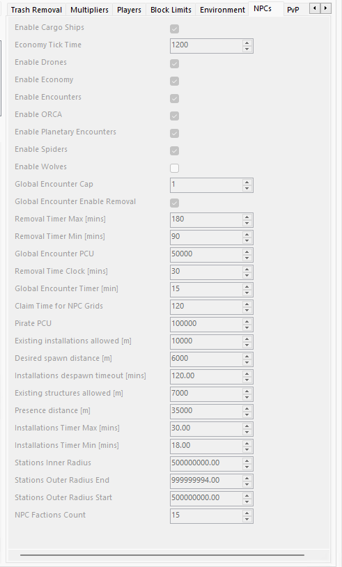 made sure settings were set properly for economy and spawns, only spawn not turned on is wolves