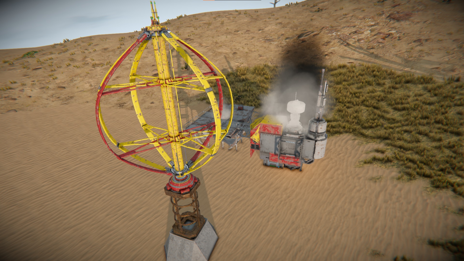 Today I found this on Keen DE #1. A similar or the same building was spawned once in red and twice in yellow in the exact same spot. (Drills to the right are my ship.)