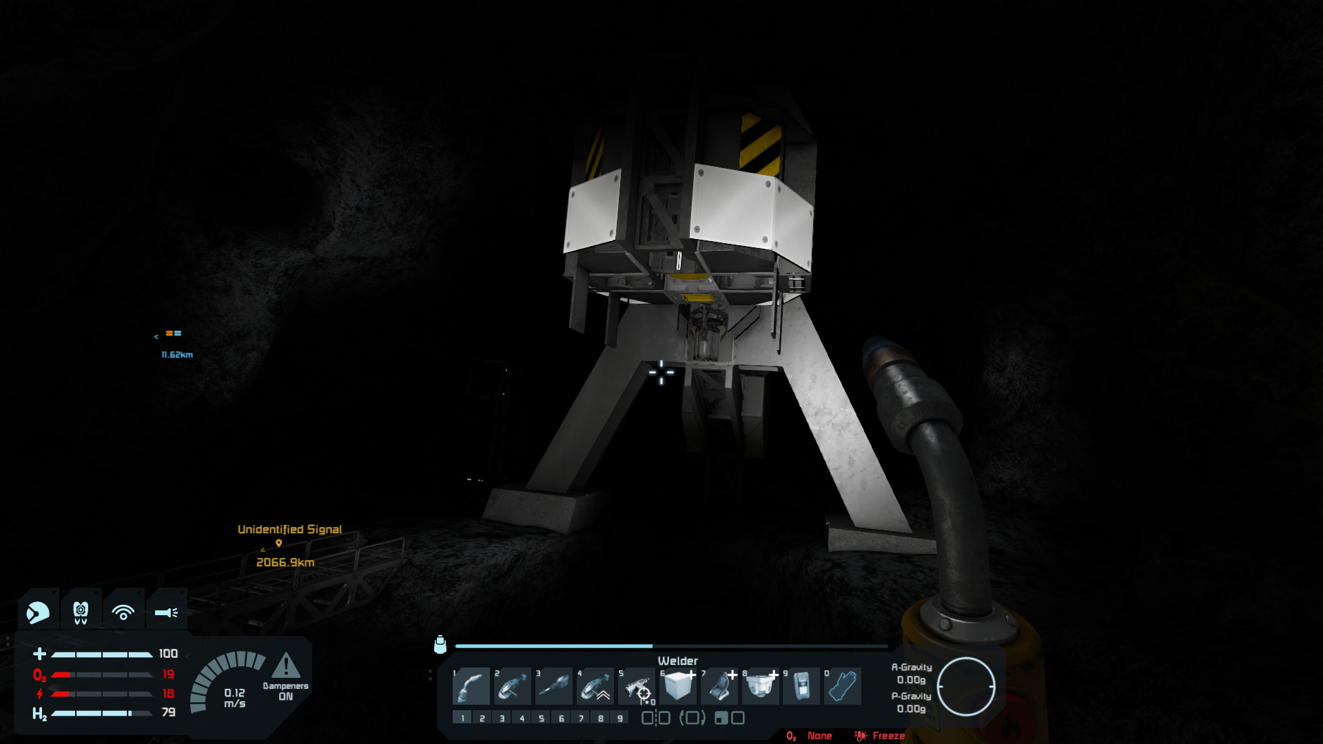I was walking around and checking out cargo containers. I ground up the safe zone block, but left the reactor.