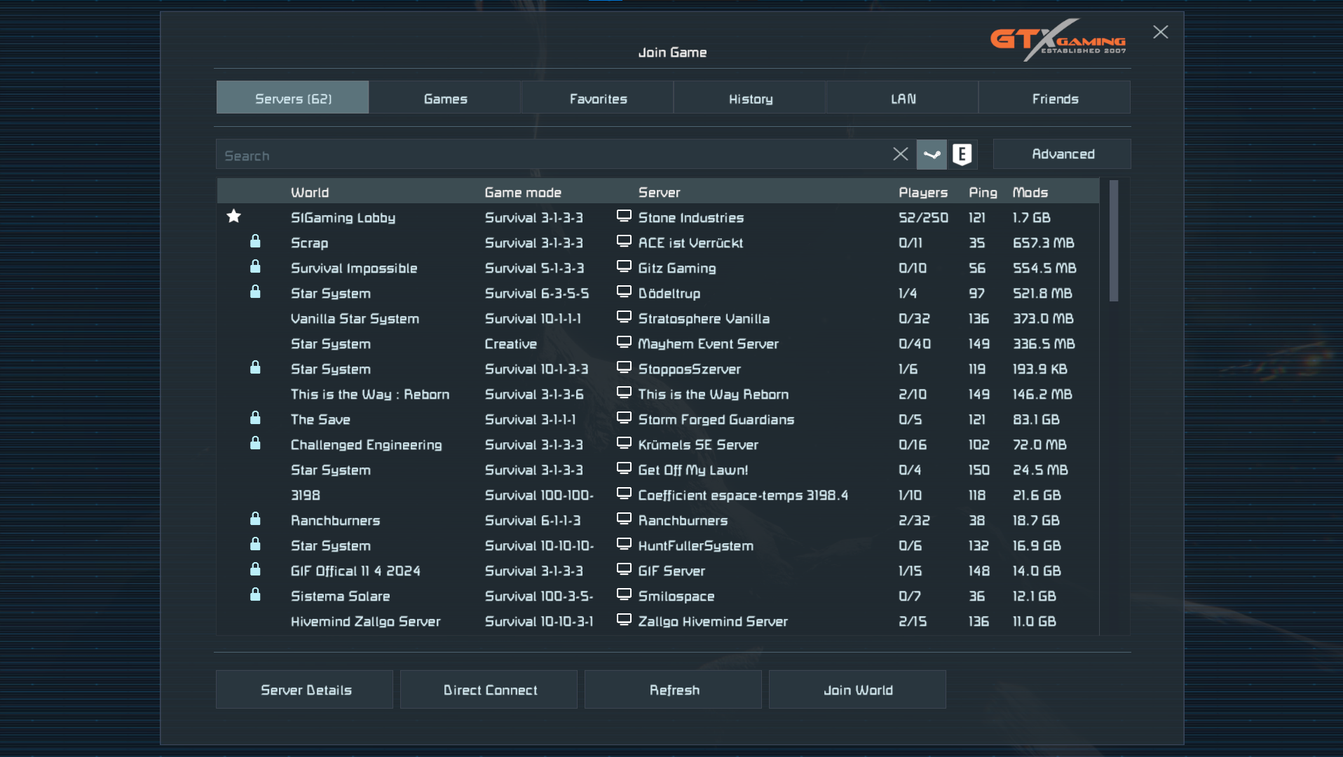 Could you please try searching for servers using the default Advanced Search settings or without too many filters? Additionally, let us know if this issue is occurring for specific servers, such as the one you're trying to access is a Torch server. Sometimes, Torch servers may experience issues that are specific to Torch and don’t usually occur on Steam or EOS servers.