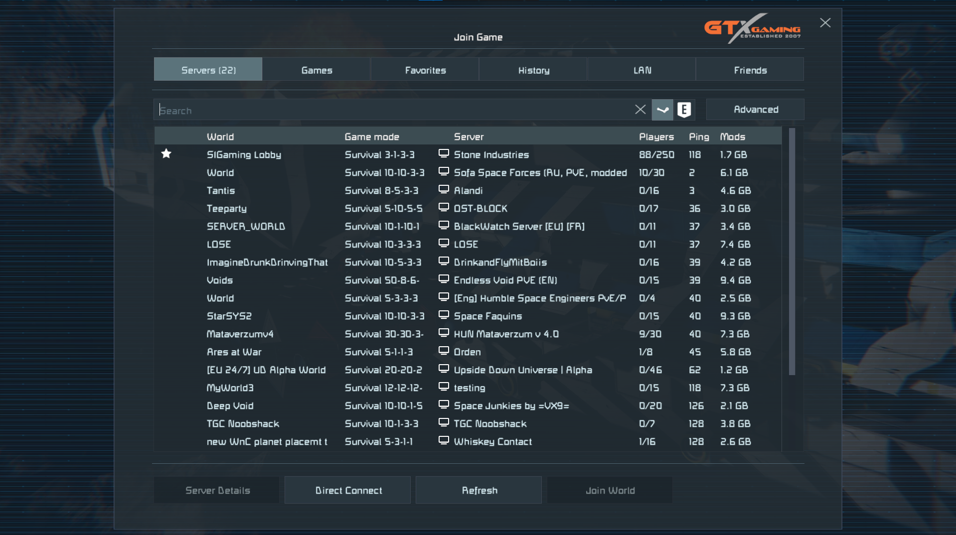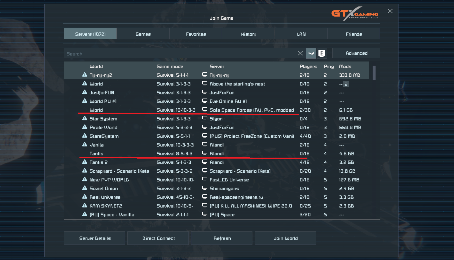 Press "Join Game", make advanced search with rare server settings/mods, and there is always a decent list of servers, that has broken info: