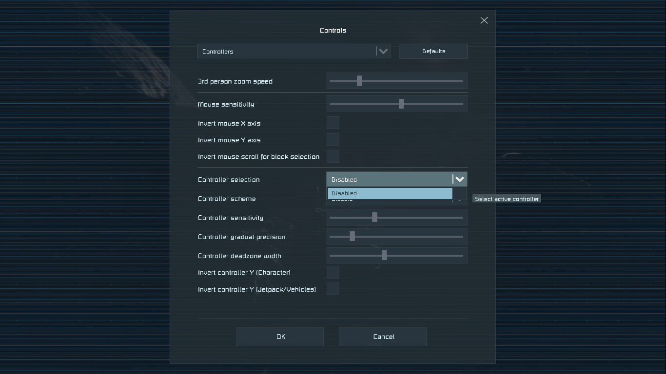 I have Xbox Game Pass and play these games through GeForce Now. When trying to play Space Engineers, I can't use my Xbox One gamepad. From everything I have read I should be able to enable this by going into Options > Controllers > Controller Selection and enable it in a dropdown but that drop down just shows "Disabled".