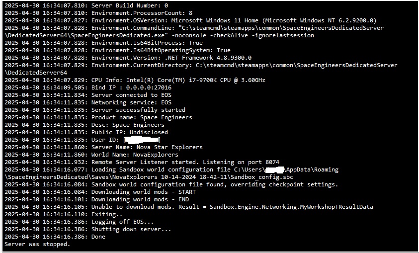 Updated SE Dedicated server today and now existing modded worlds will not start. Can create a new vanilla world which will launch fine but as soon as I add a mod to it it stops working till the mod is removed.