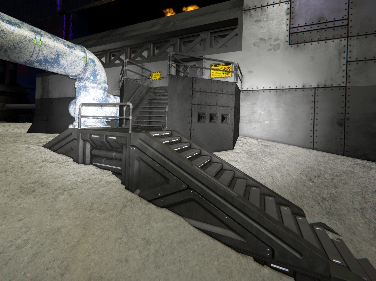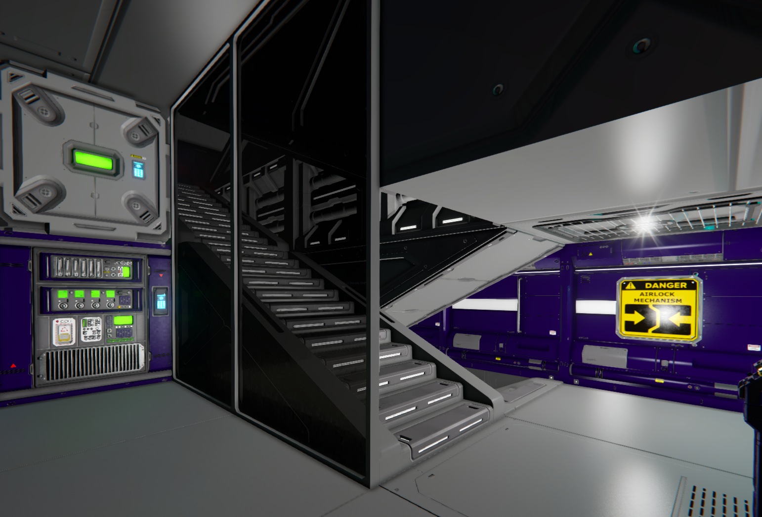 The existing stairs are difficult to combine with the corridors. Making them airtight requires many blocks, and the subsequent lighting is even more difficult.