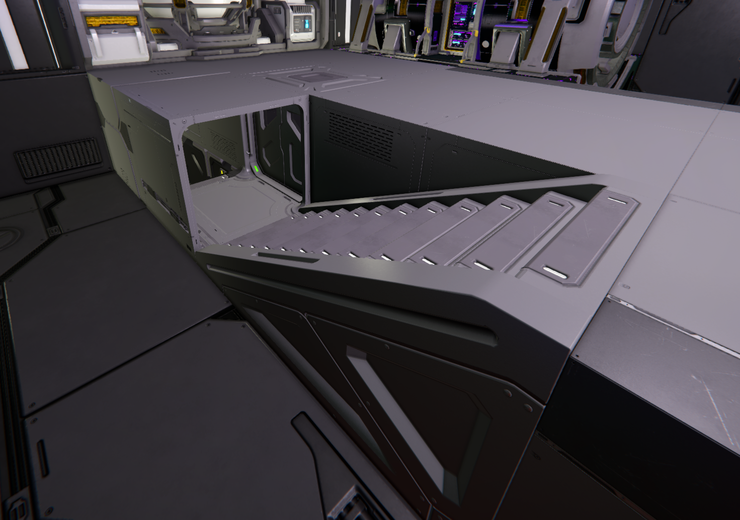 I was about to post, basically the same request. I have sleek corridors in the entry and some stairs. I'm moving my base underground after repeated attacks by NPC ships so I have stairs to the base level and would like to continue the Sleek Corridor design on the stairs also.