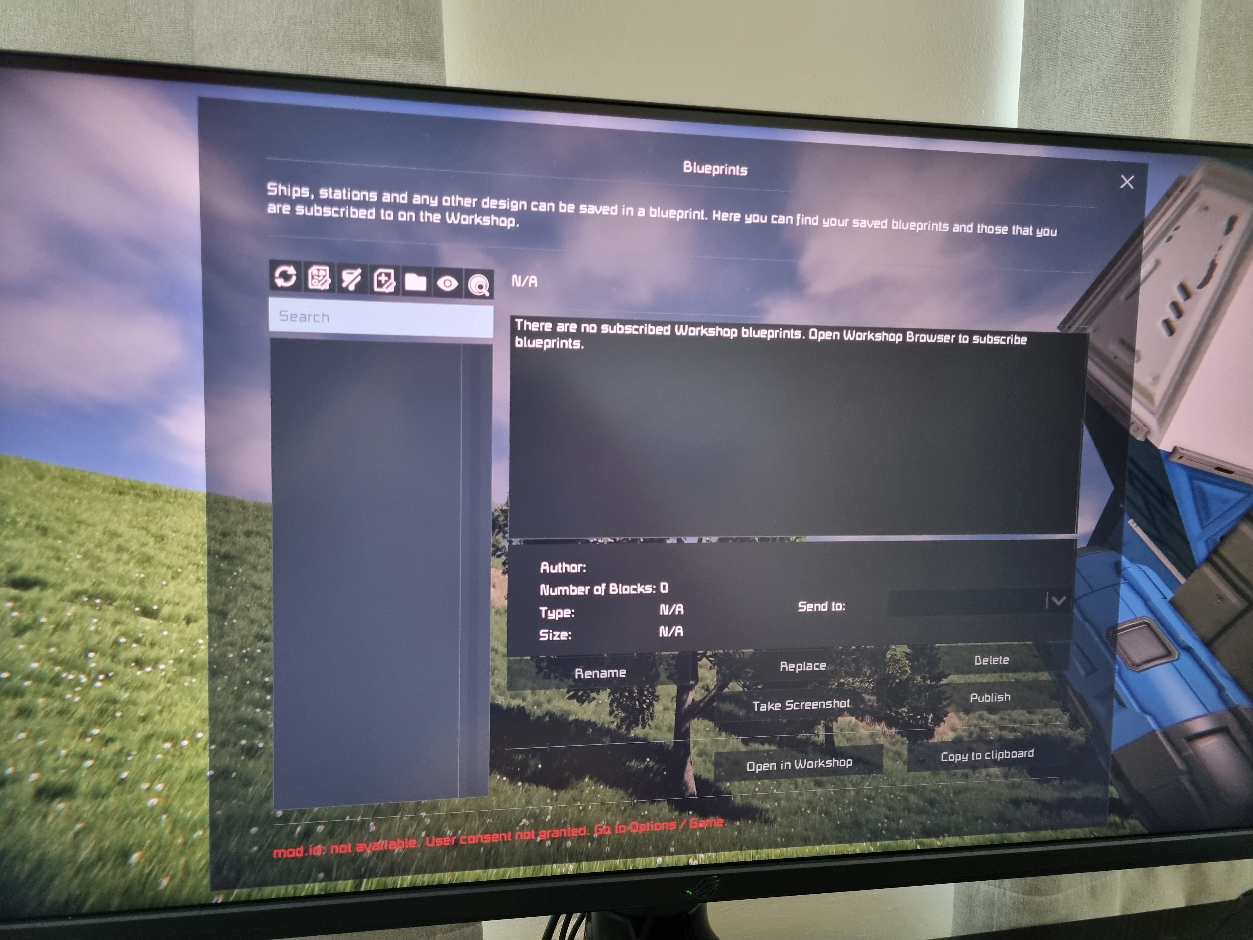 - I started a new game, but after I pressed the F10 no blueprint at all.