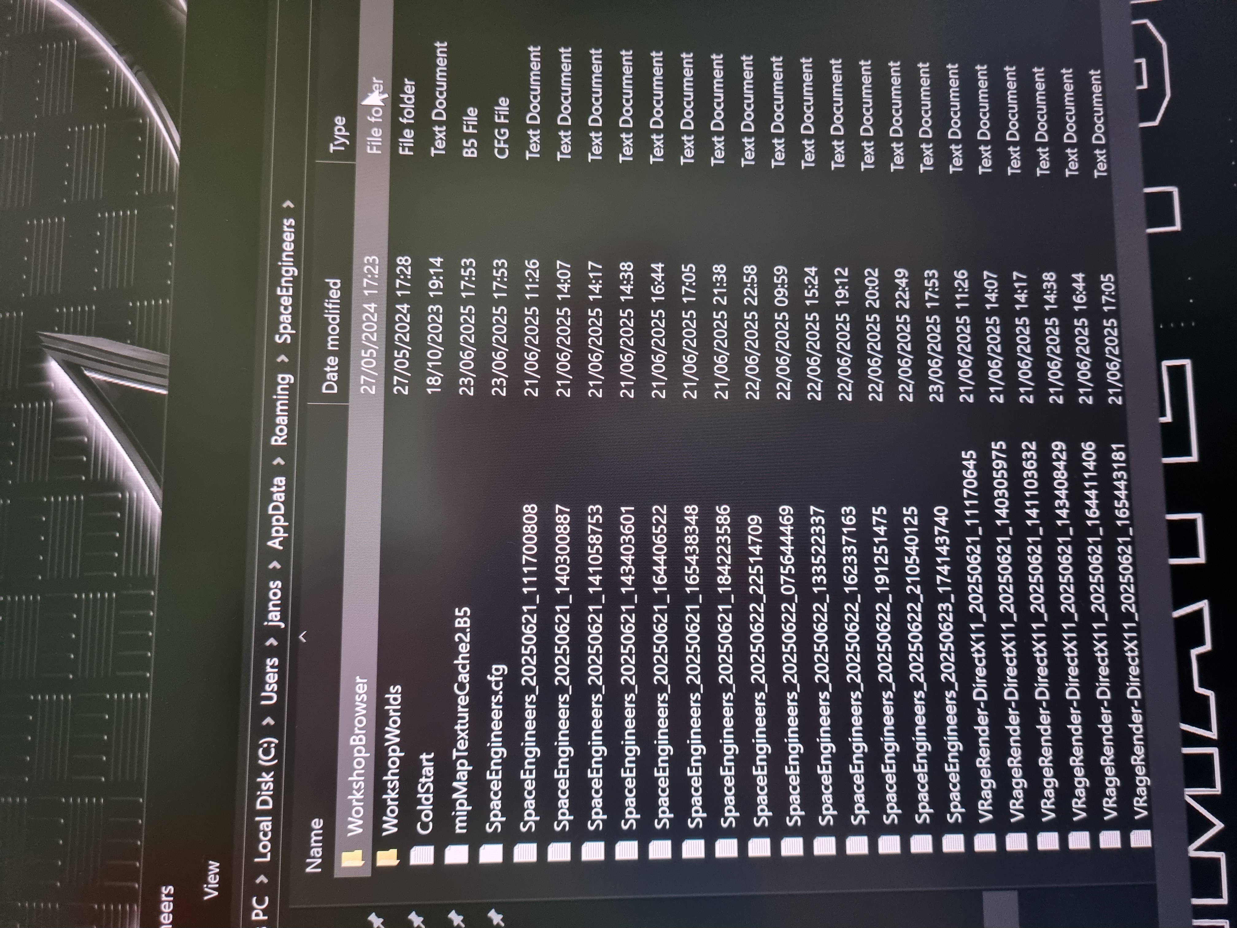- Yes, I confirm my saving files are in the hudden user/appdata/roaming/space engineers folder.