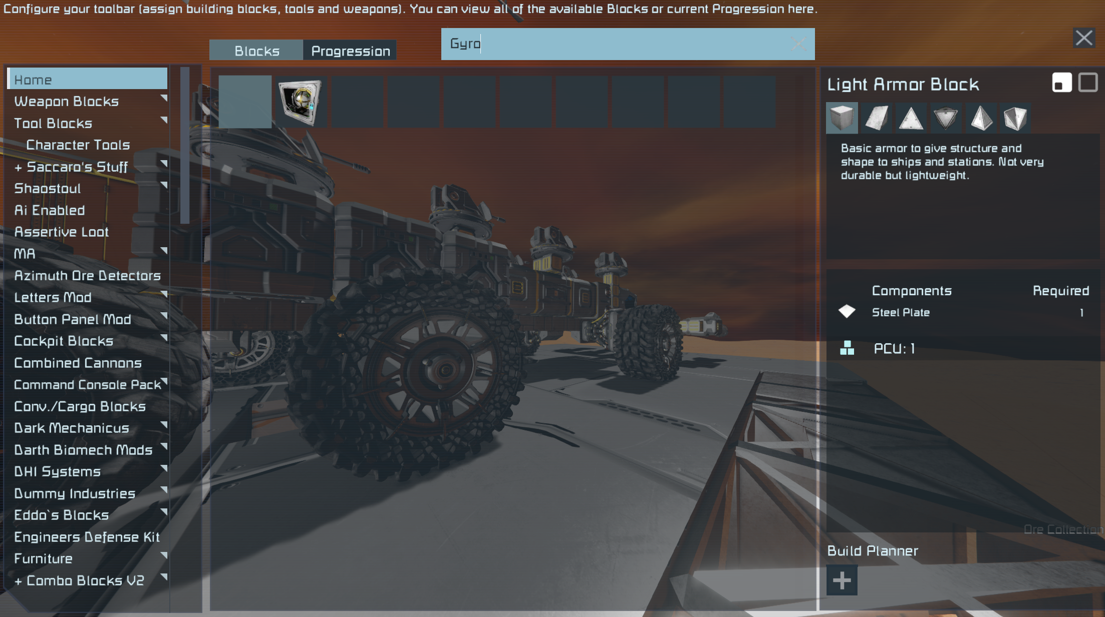 I was playing SE 1 with a friend and while building a mining rover I noticed that the only gyroscope available in the build menu was the prototech one. I have already verified that it is not because of mods and progression is turned off. Even so I created a new world only to find the same thing. Attached is a picture of the missing place where the "Standard" gyroscope is supposed to be.