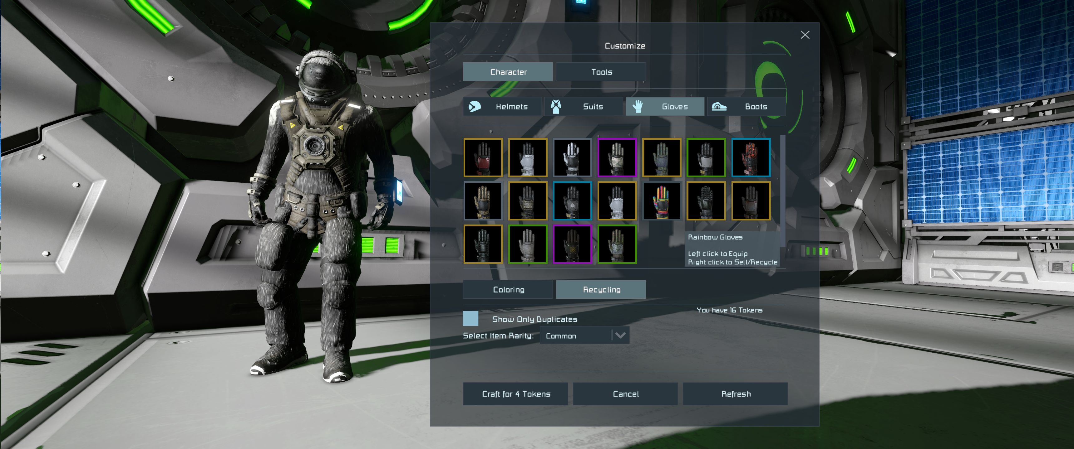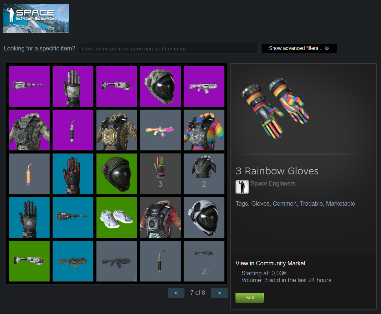When I first got Space Engineers, it did work for a little while: sometimes, I'd get a skin that I already had, and it appeared in the in-game character customization menu as a duplicate. I even recycled some. However, for at least a few months now, duplicate skins do not show up in the game anymore. How do I know I got them, then? I get Steam notifications, and in my Steam inventory, I got a bunch of items with a number on them denominating how many I got: more than 1.