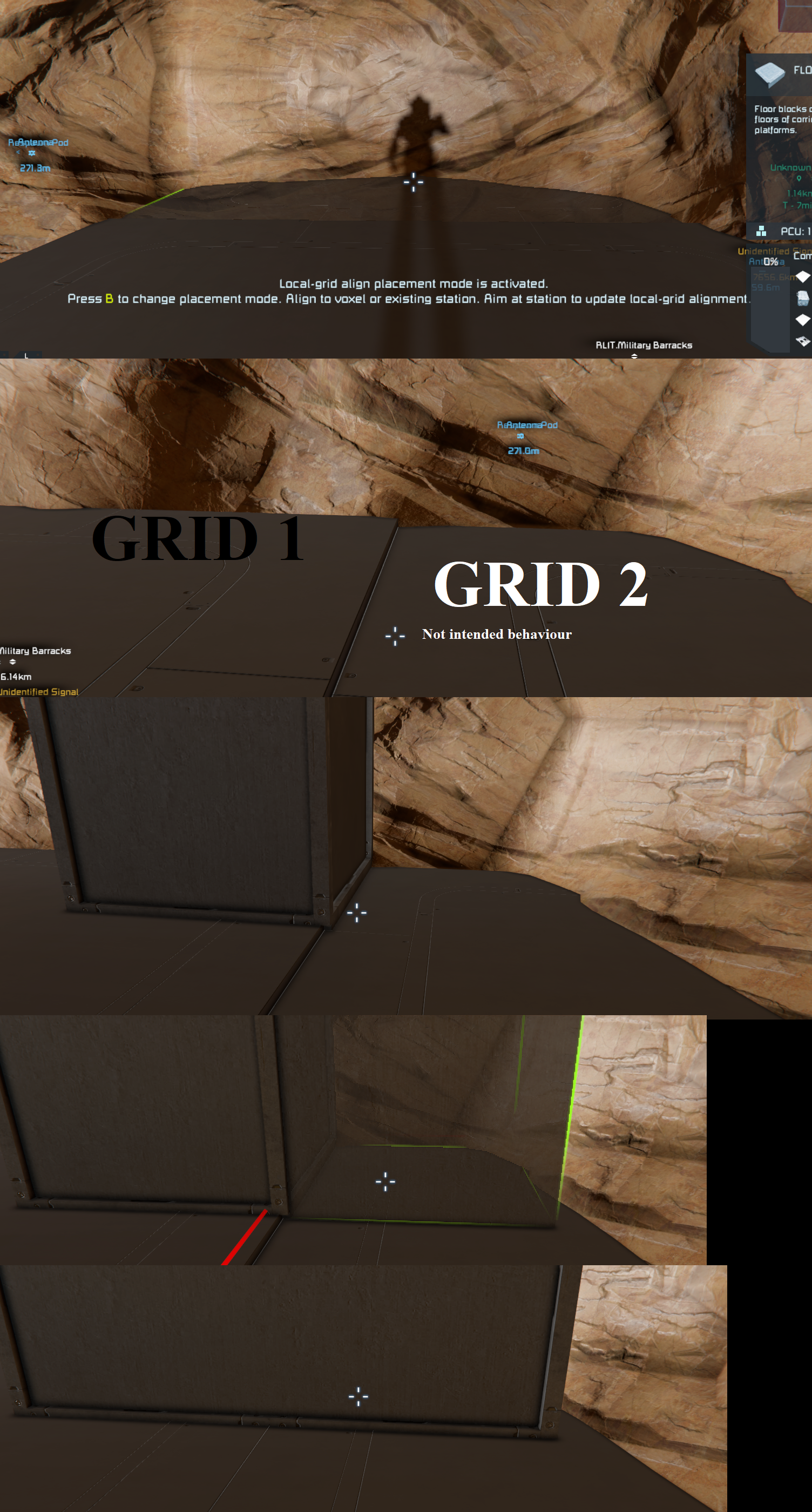 When using local grid align placement to place the next armored block into the ground it looks good and welds up seamlessly, but will not transfer power, so it is not touching the previous block.