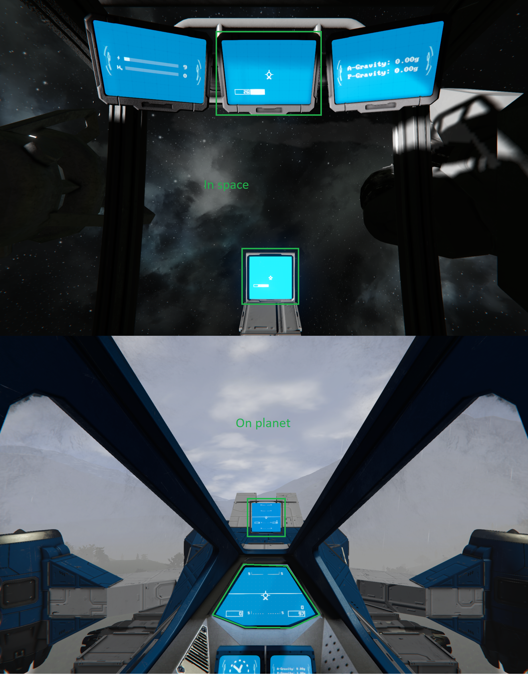 When using artificial horizon on hold or transparent lcds, the circle indicator, speed and grid dissappear when in zero gravity (space). Circle indicator, grid, speed, etc present when ship is in gravity only.