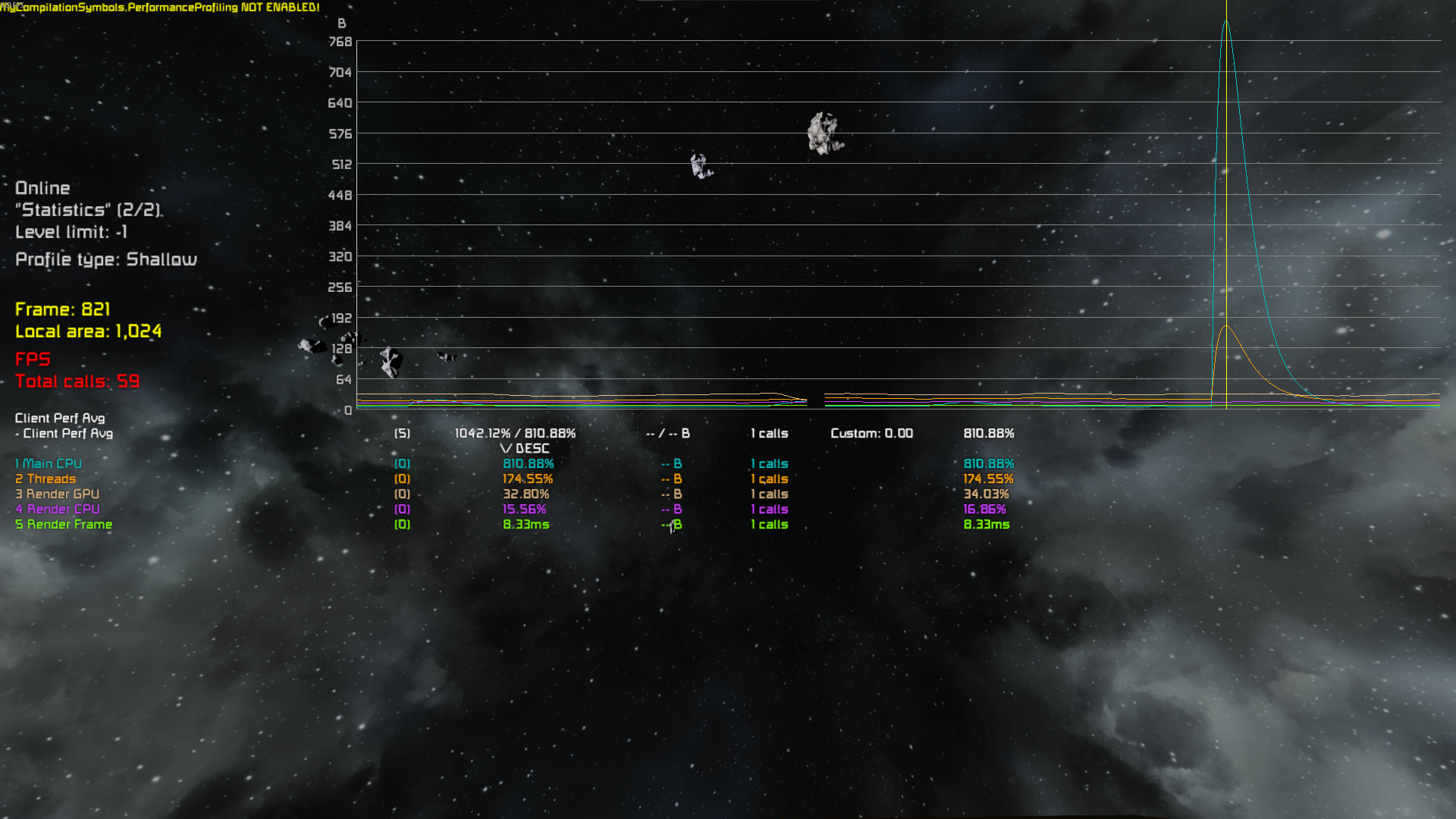 - Screenshot of the CTRL+H profiler at the same moment, but navigated into Client Perf Avg