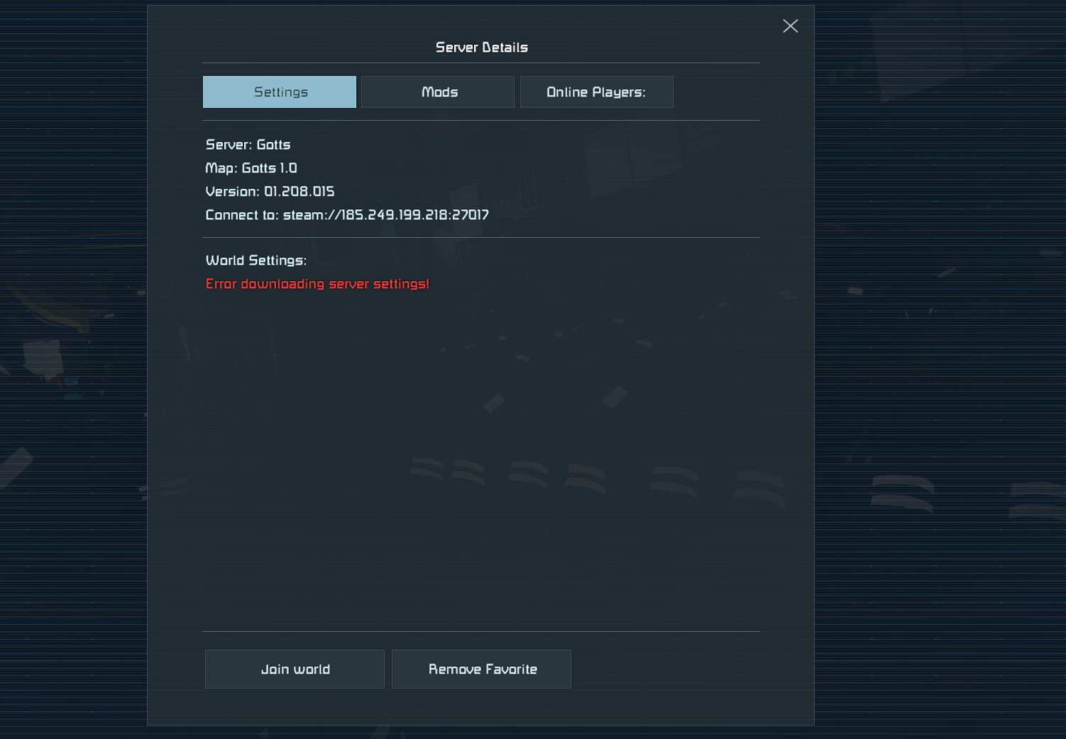 But after i addet 44 Mods the Server displays at the Multiplayer list ingame the Errror