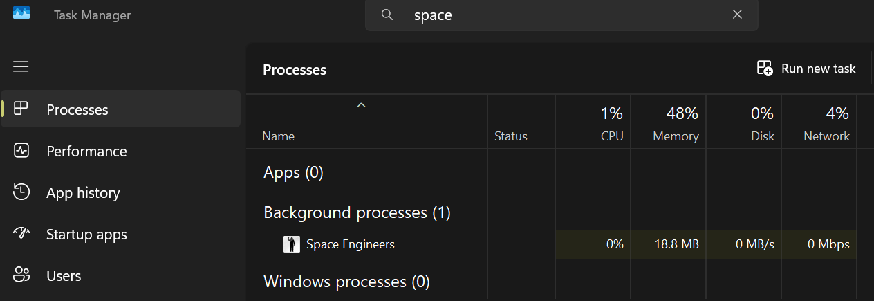 Space Engineers only runs in the background on PC (Steam)