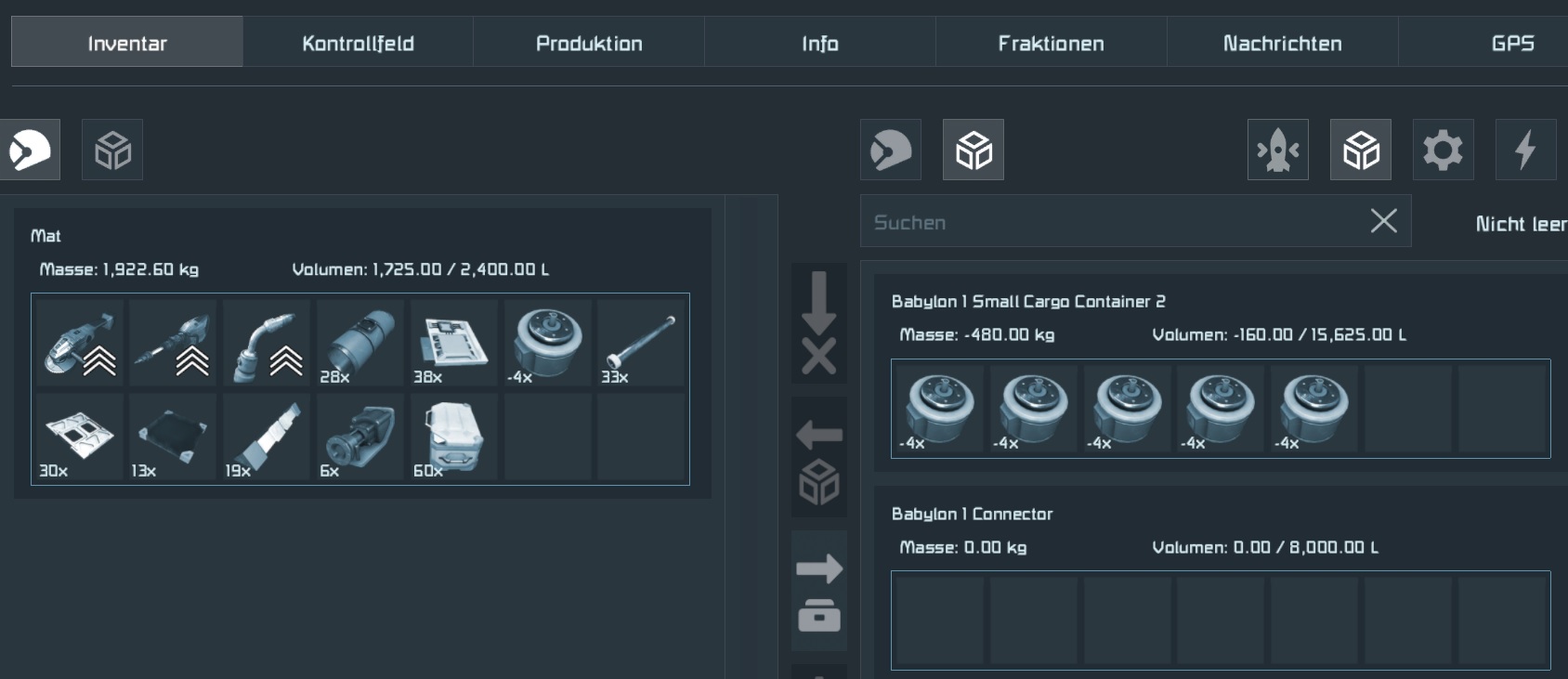 Last but not least, even when pulling components into the player inventory without them being displayed there, only the litres of the inventory being used up and the small inventory bar over the hotbar being filled and colored red, it still did not register the items in the inventory when trying to weld blocks that would definitly require these components. My guess is that the desync made my client think that the items were there, whilst the server did not see items in my inventory, telling me that the block is unweldable. As my inventory was full with items i did not see, my inventory was locked and I could not use my inventory anymore at all.
