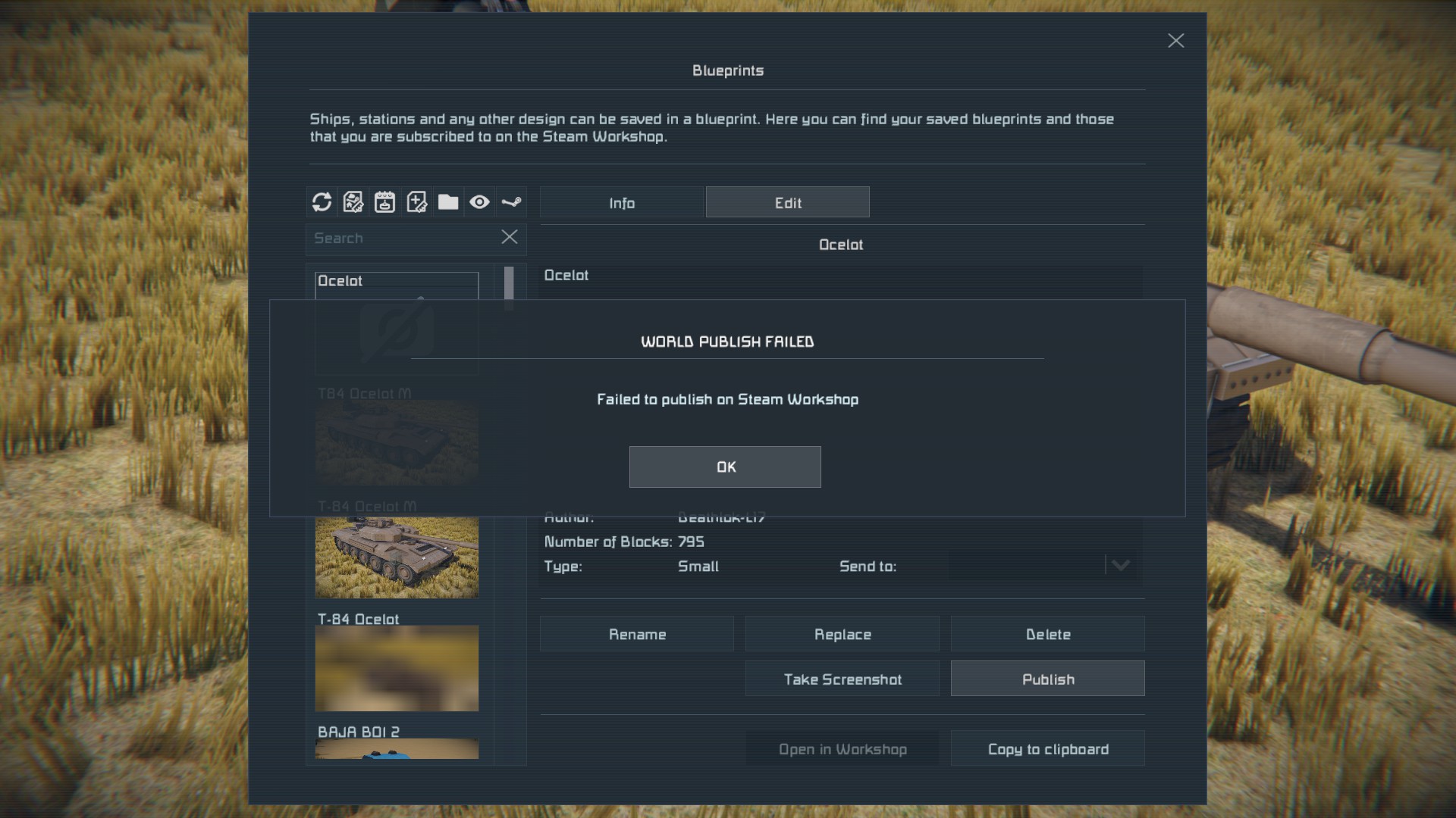 Blueprints will not publish to workshop be be shared