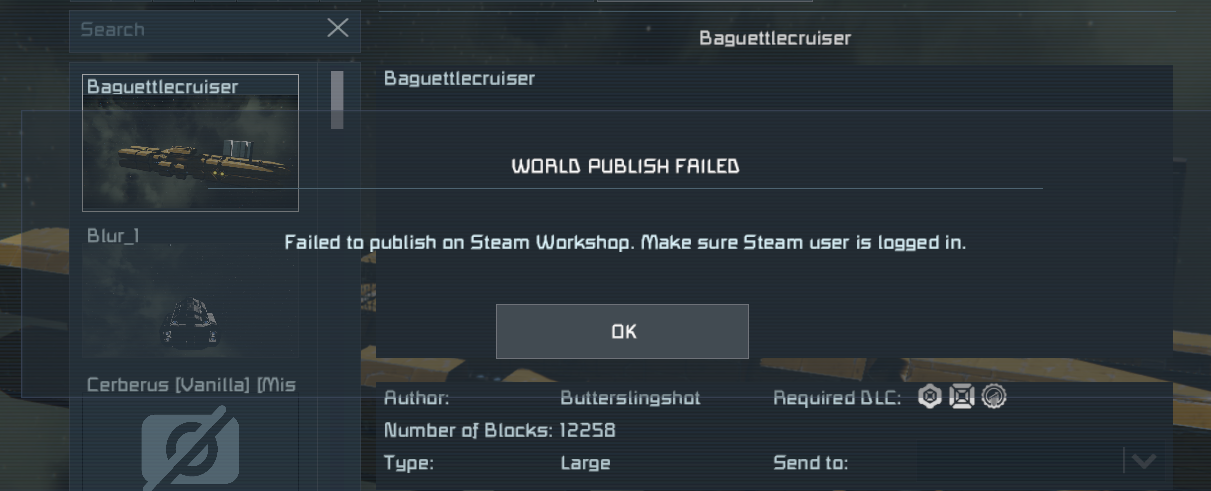I reproduce and reported this issue using in a different topic. We will address it as soon as possible. Thank you for your patience. I'm merging these threads together: https://support.keenswh.com/spaceengineers/pc/topic/failed-to-publish-on-steam-workshop_1