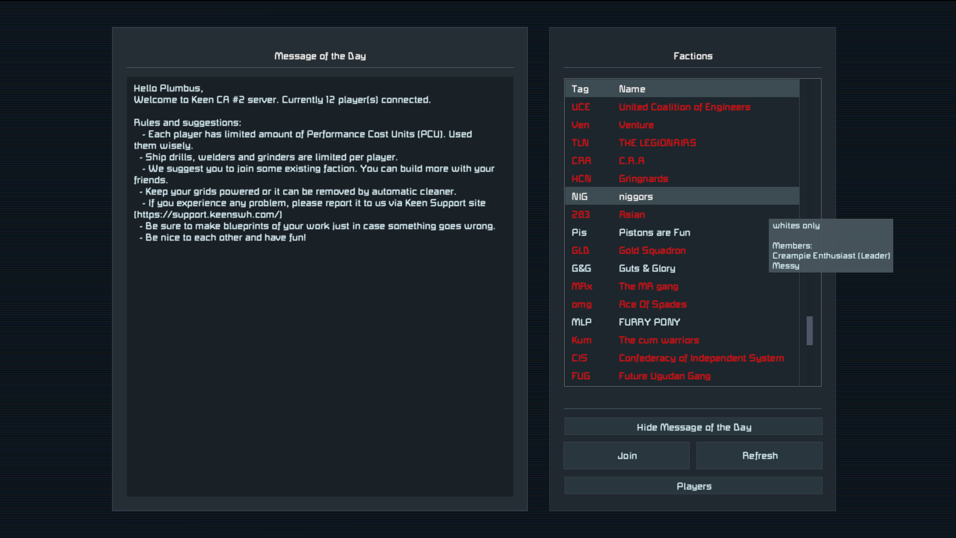 This would free up tags for actual factions to use and would make the list not so full of derogatory terms and apparently racial slurs.