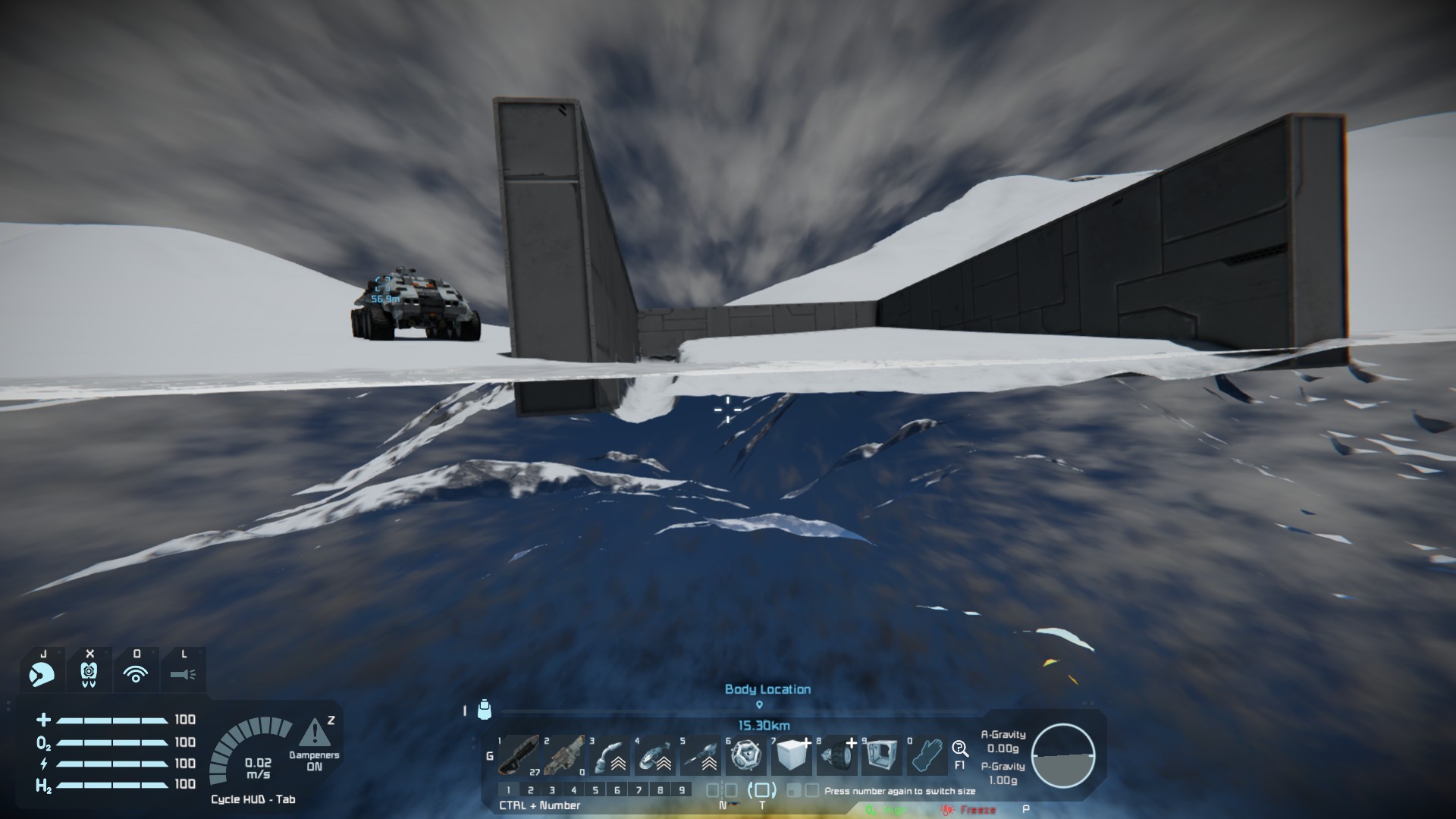 Unfortunately, I couldn't use the jetpack to fly back out because the surface blocket me, however I saw everything what was above me.