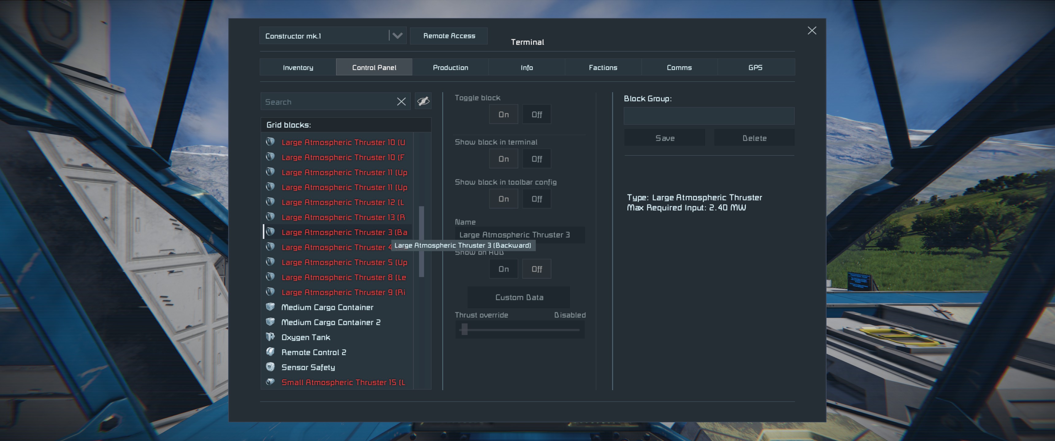 - Constructor mk.1: access denied on Landing Gear, Thrusters, Spotlight