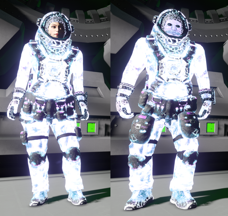 The face of the female astronaut should be a ghost, like the male astronaut.