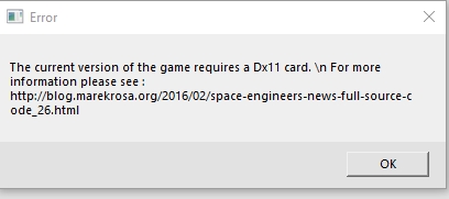 Sorry to hear you are experiencing this issue. I had a look through our forums and came across this post https://support.keenswh.com/spaceengineers/pc/topic/failure-to-launch-game-requires-dx11-gpu it seems a user had a similar issue but resolved it which may be worth trying :)