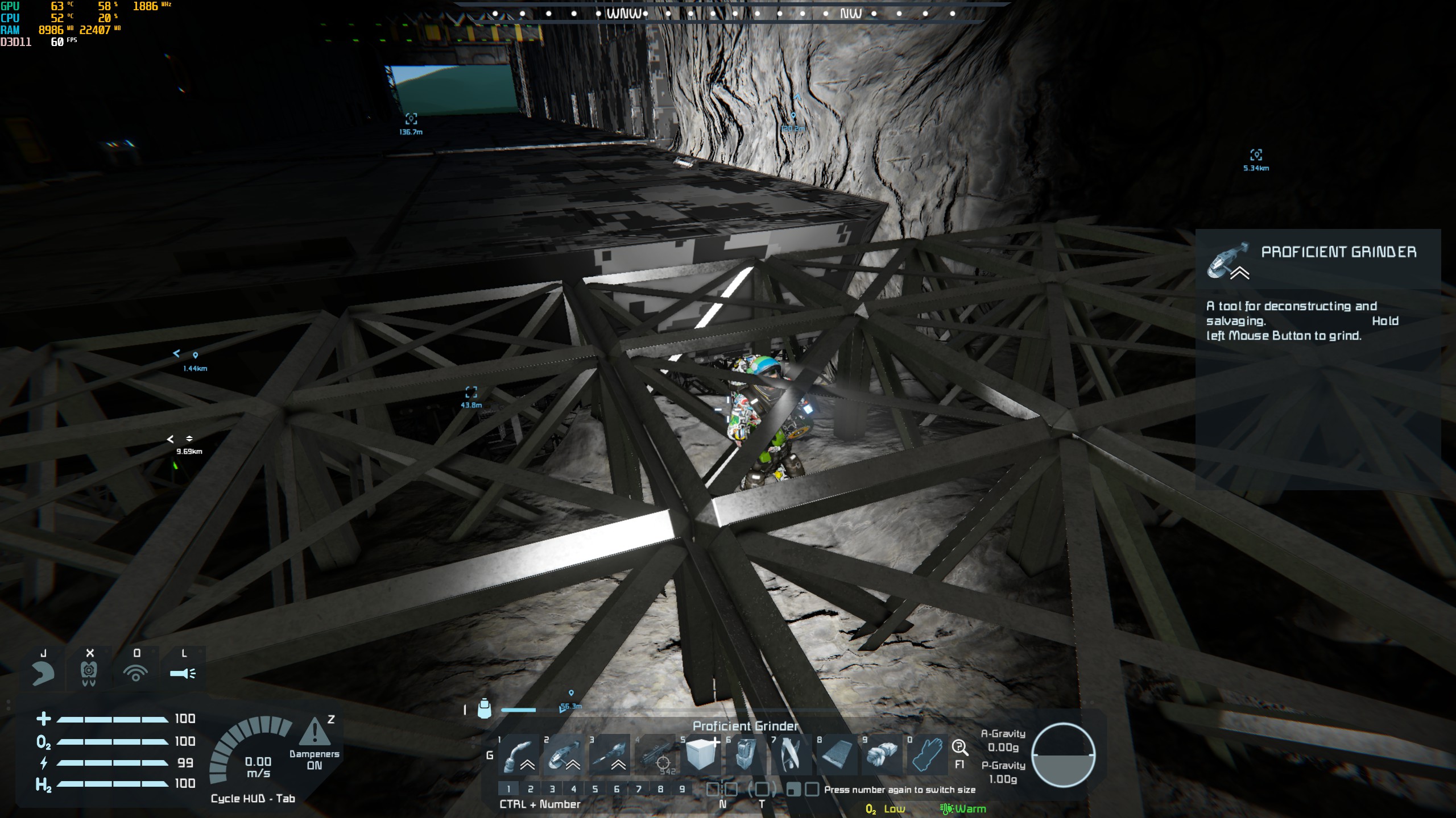 After some time, blocks start to glitch, by the means of falling through them and running into invisible one. Also my character cannot run up slopes anymore but starts sliding down.