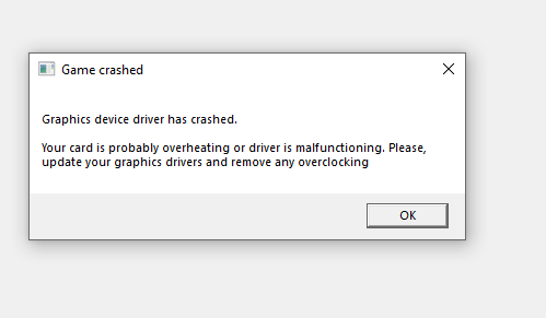 The exact same thing happens to me i have a RTX 2080 Super and every game runs smoothly but with this game as soon as i start the game and i have it on foreground my screen goes black and and then to normal again with the message Your graphics driver has crashed.