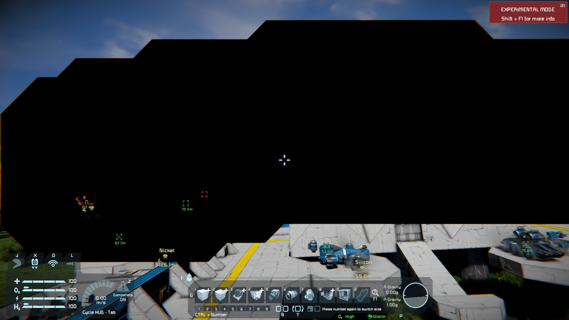 in the world where it first appeared everything is black and I can only see the sky. The 2nd world which I just started also shows the bug but there it is smaller and stays in the same spot (so if I turn around the bug is behind me and if I turn 90 degrees the bug is on my left like picture 2 and 3 show)