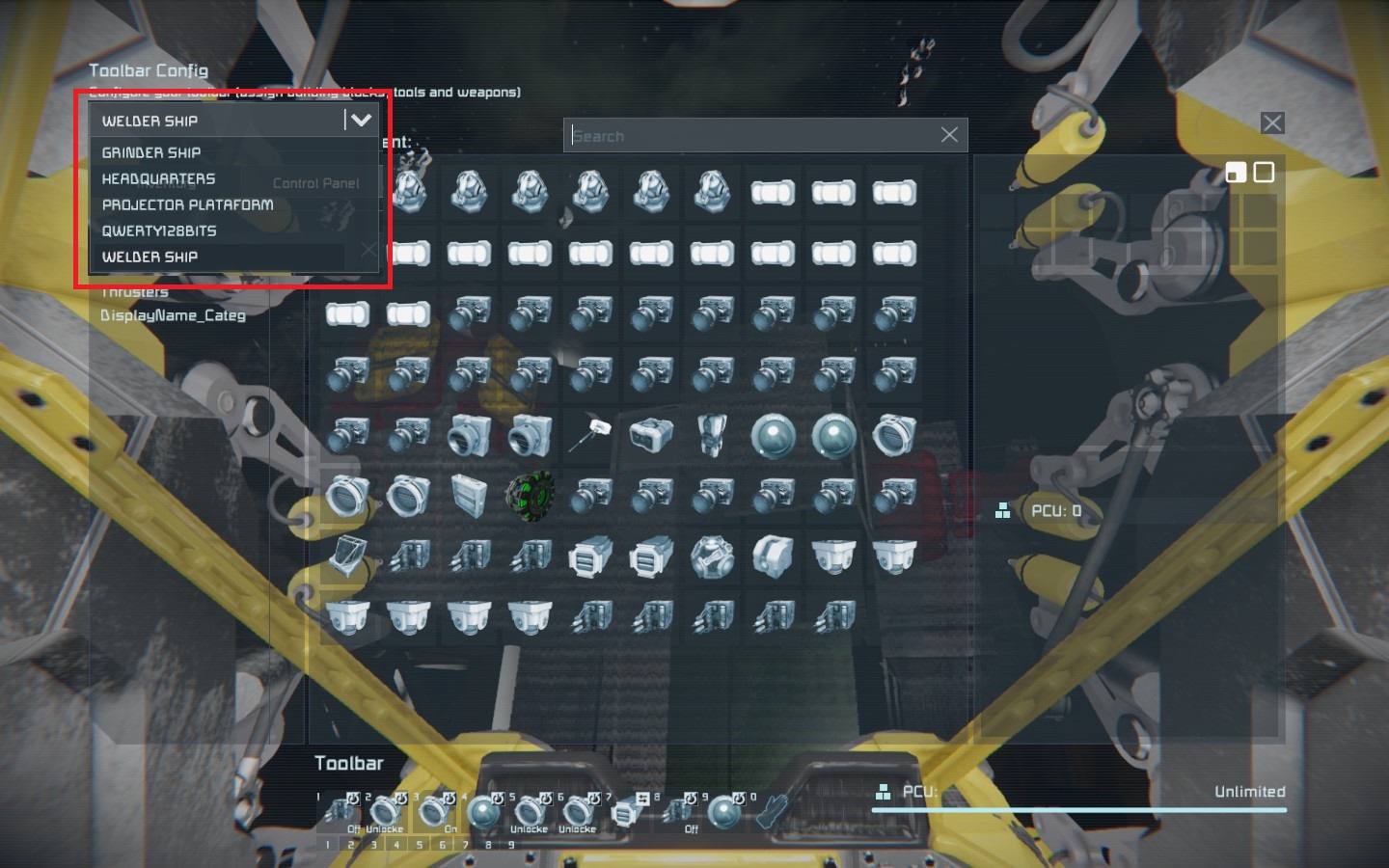 An example of use would be to create a shortcut to turn on / off the projection of a ship, allowing me to solder a few blocks, turn off the projector and finish the solder without mistake.