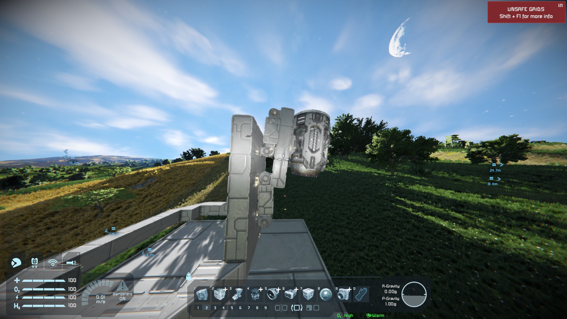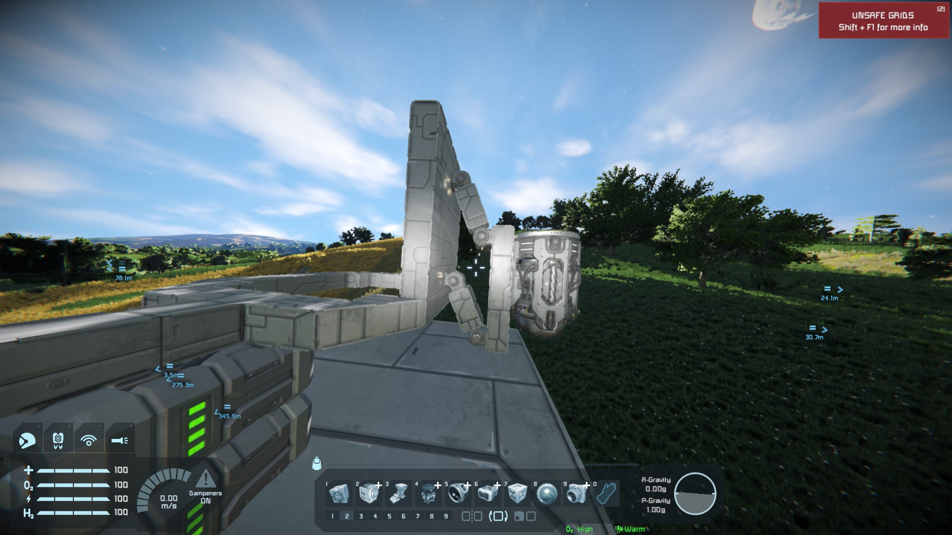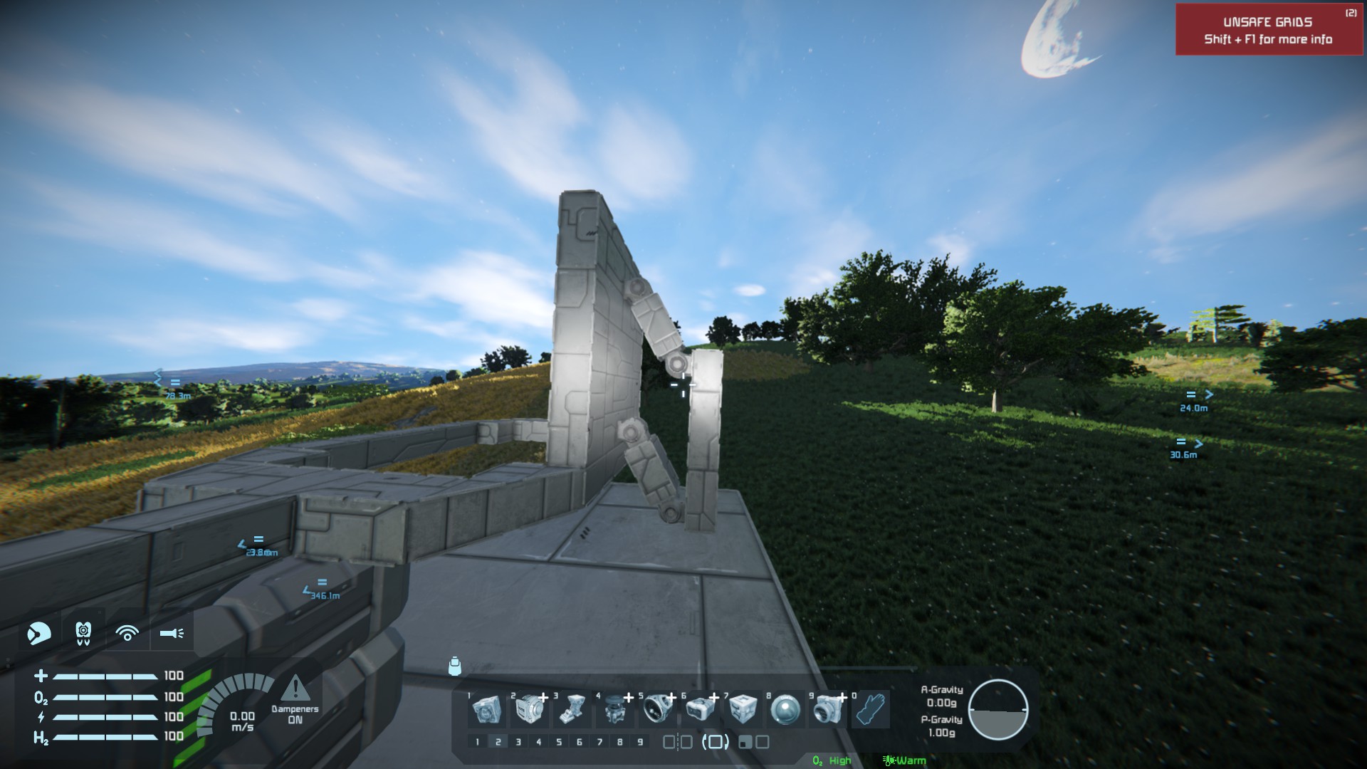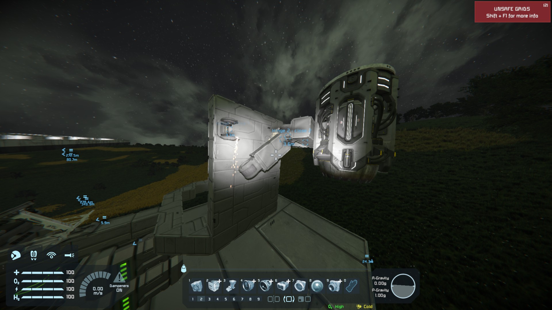 I was attempting to build somewhat retractable thrusters using multiple hinges attached together, all works well until any amouts of mass or thrusters (even turned off) are attached to the assembly. I have tried turning up and down the torgue and braking torgue but nothing stops the hinges, and what attached, from clanging around.