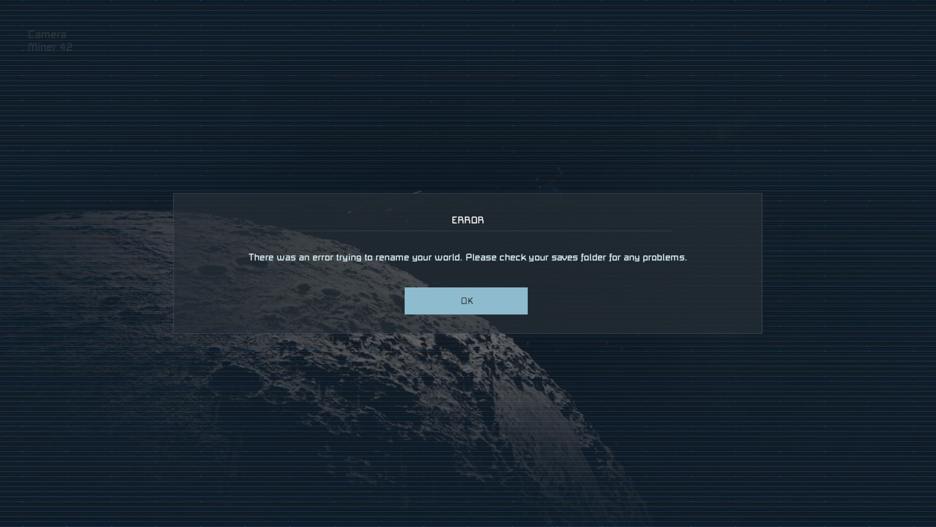I get a 'check your save folder' error when trying to modify a save. Auto-saves and regular game-saving works properly. Any attempt to change world rules (or name) is met with this error.