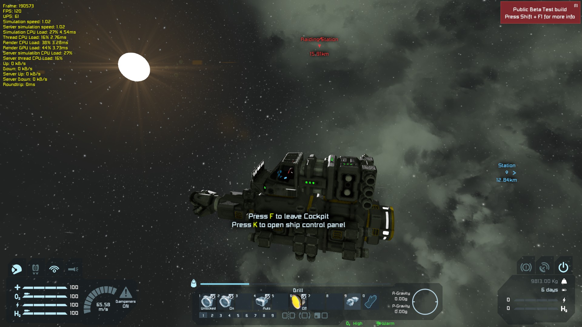 I accelerated to 65m/s towards a distant asteroid and turned off my dampeners. When I was approaching the asteroids I enabled the dampeners and found the ion thrusters disabled.