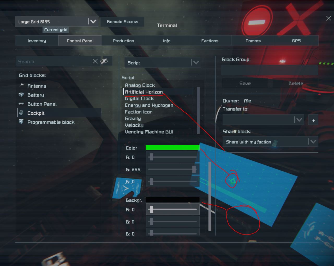Thank you very much for your feedback. Unfortunatelly I am not able to reproduce the issue. I tried Single Player and Dedicated server and on both I was able to change background color of Fighter Cockpit to black and other colors without issue.