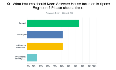 Where are you with regards to future development? Who is fueling the ideas for your future development? You claim to listen to your community, but when key bugs and issues are not being resolved and fixed, and valued suggestions go to the waste-bin in favor of designs that would be of interest to you, how can we have faith you are listening to us? In example, a questionaire was posted a while back asking what the community wanted the dev team to focus on. As you can see with the questionnaire results, dlc was of the lowest scored. At what point did it seem like a good idea to go against the wishes of the greater community to appease a small fraction who wanted dlc in the first place? Never mind the fact that the dlc itself as explained by prominent modders that the designs go uncredited, net players with unfair advantage, and lock functional blocks behind a paywall on top of the aforementioned sloppy handling of dlc protection. Where are you on this topic?