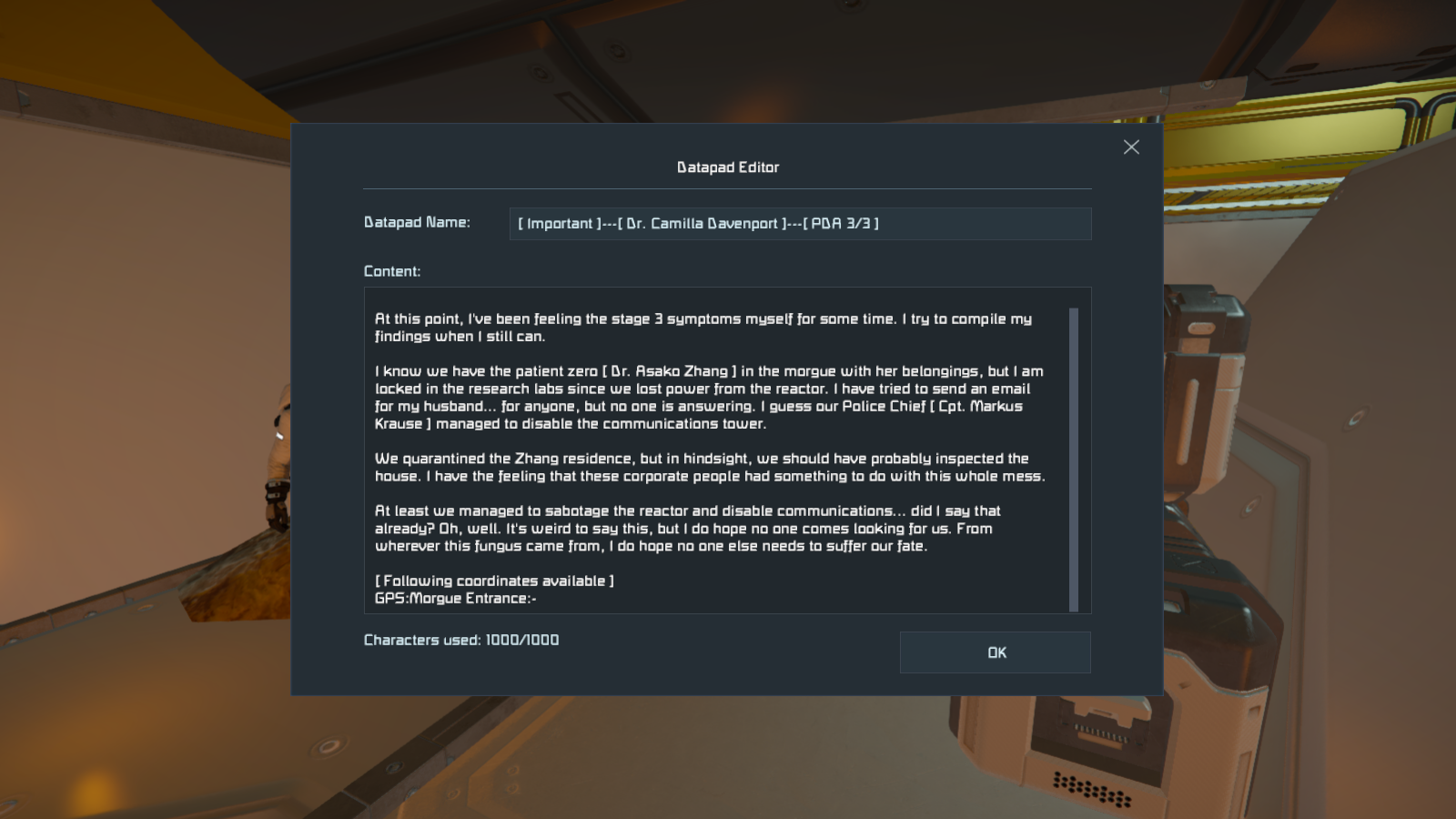 Another issue: The datapads now have a 1000 character limit, so some of them are getting cut off in mid-sentence.