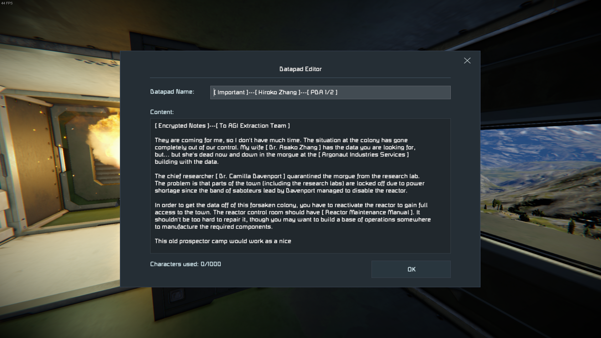 The data pad problem seems to be solved. I can register GPS coordinates, and it seems that clicking the text does not crash the game.