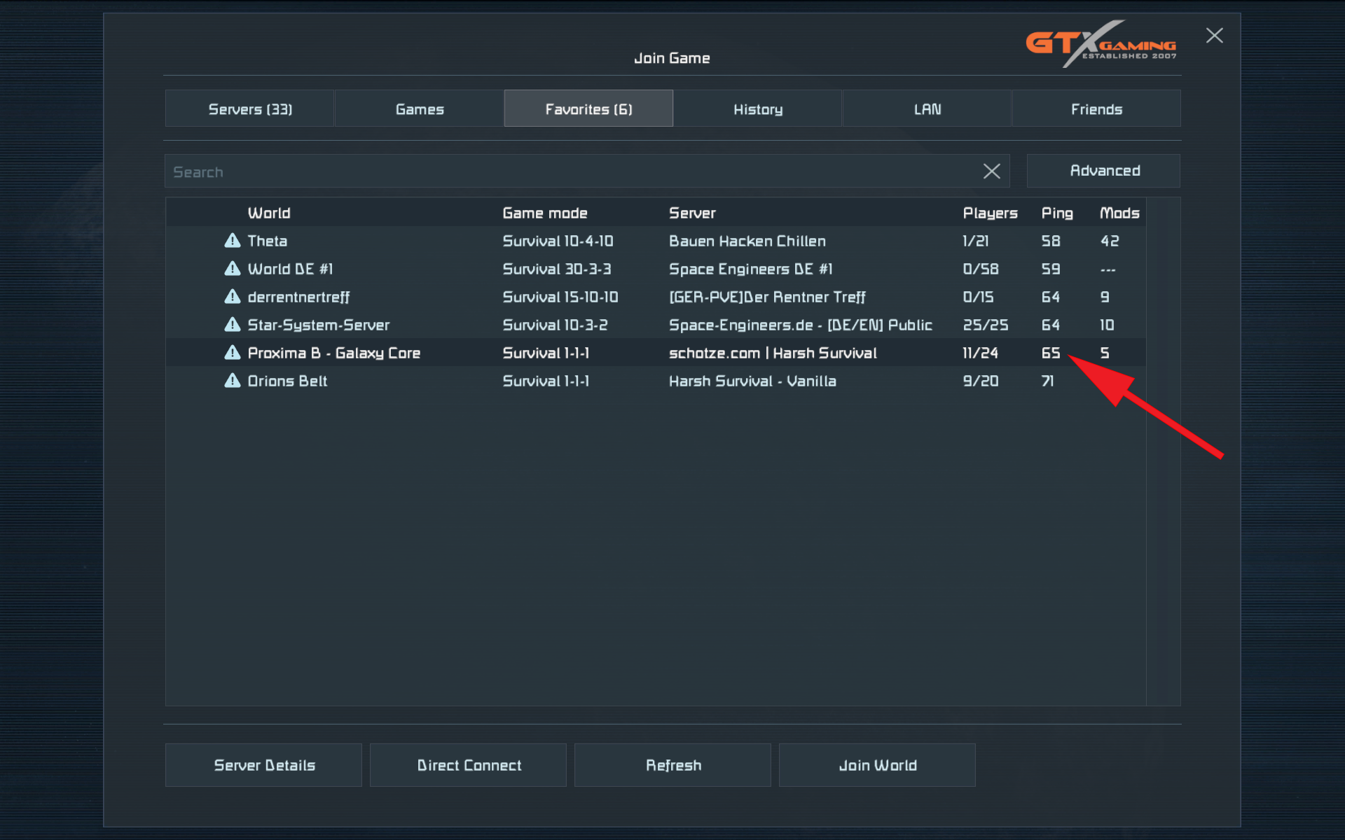 Low ping in game list but high ping in game