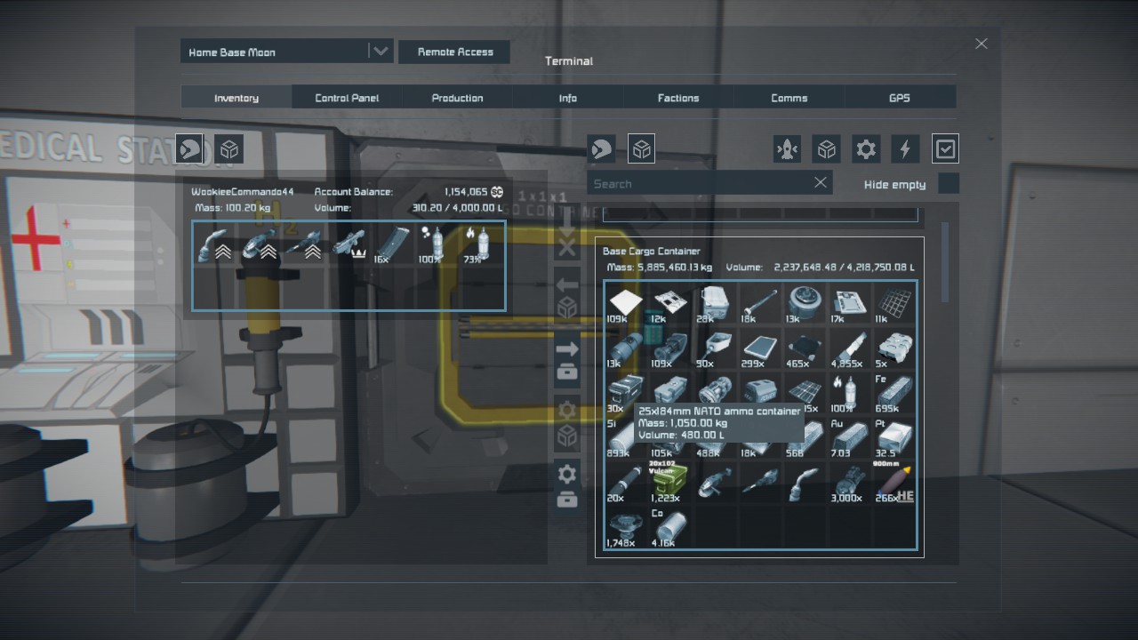 Whenever I open my inventory now after the most recent update (today is 10/25/19), the menu sections have a blueish rim around them. When ever I try to double click an item like steel plates in the cargo inventory, it first snaps to it, then moves what ever is under the mouse after moving the menu. So if I tried to double click more steel plates, it would move something underneath it instead.