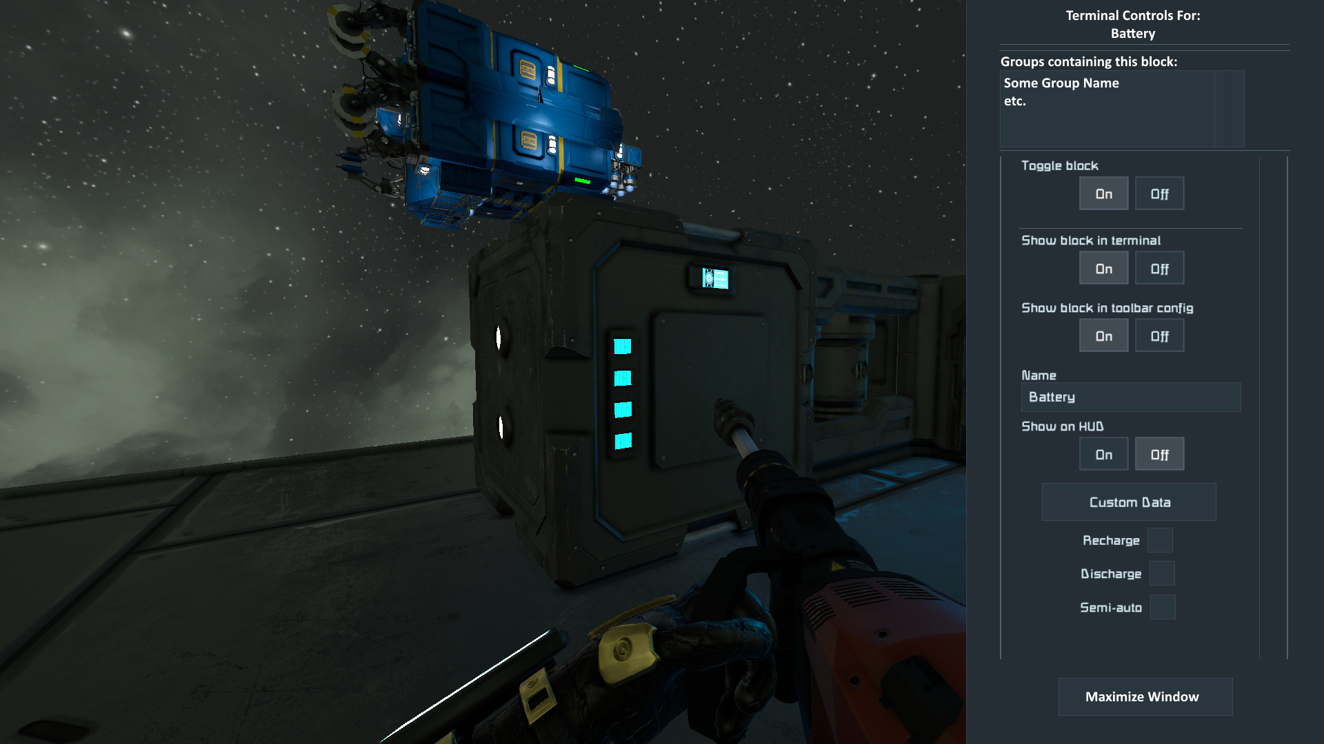 - Tweak blocks/groups while flying/driving (tweak wheels, adjust thrust override for escape velocity, etc)