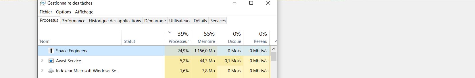 I let my game (solo) on pause and when my projector ( PC monitor ) turn on stand by mode, I quit this for returning on my game. The game appear on window mode all screen white. Nothing to do than execute the task manager and turn off Space Engeneer.exe