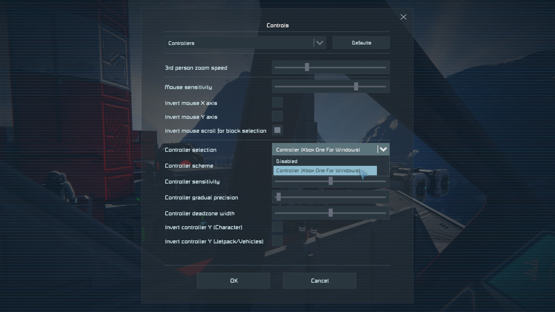 space engineers crashes to desktop for me to when selecting controller