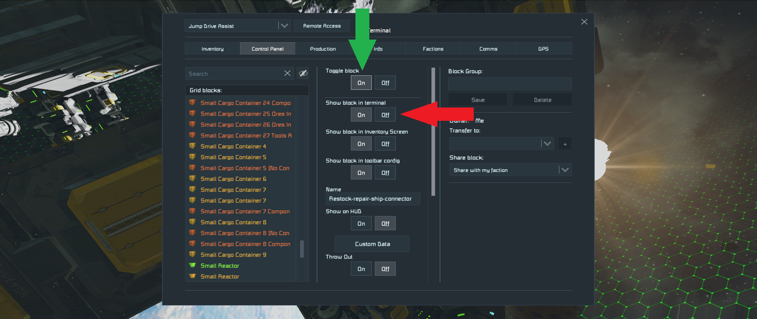 Green arrow indicating with a border to make it easier to see what the current setting is.