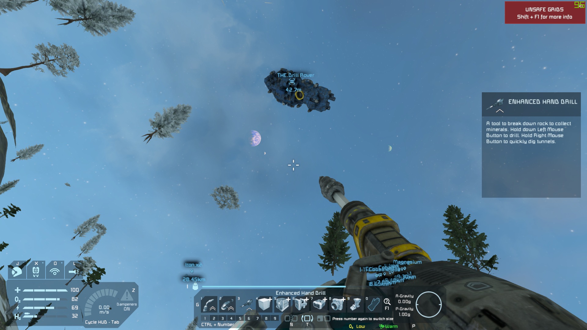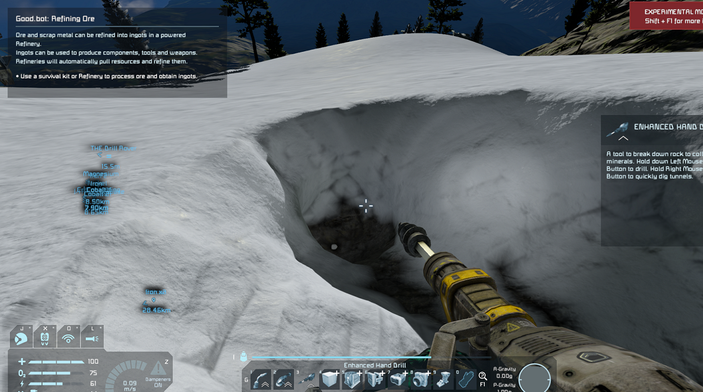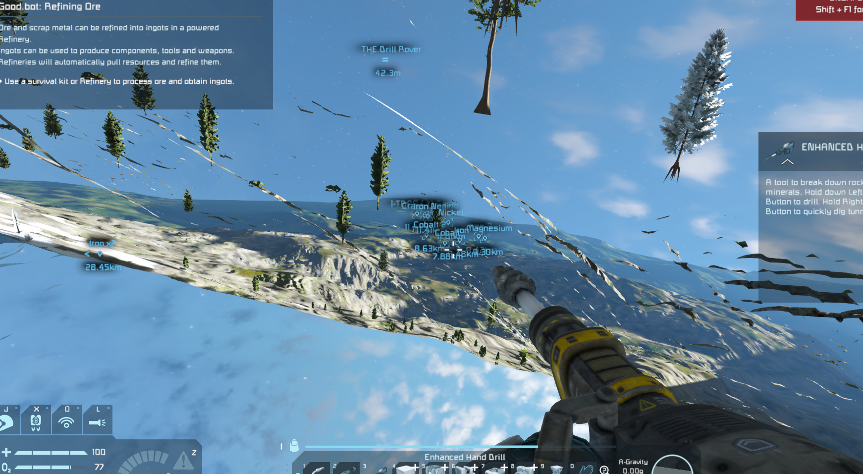 I was mining ice in my multiplayer game, when suddenly I dive through the terrain. I use my jetpack to go up again and crash on the edge, and damaging. then I tried to go up again with drill on and can pass the edge.