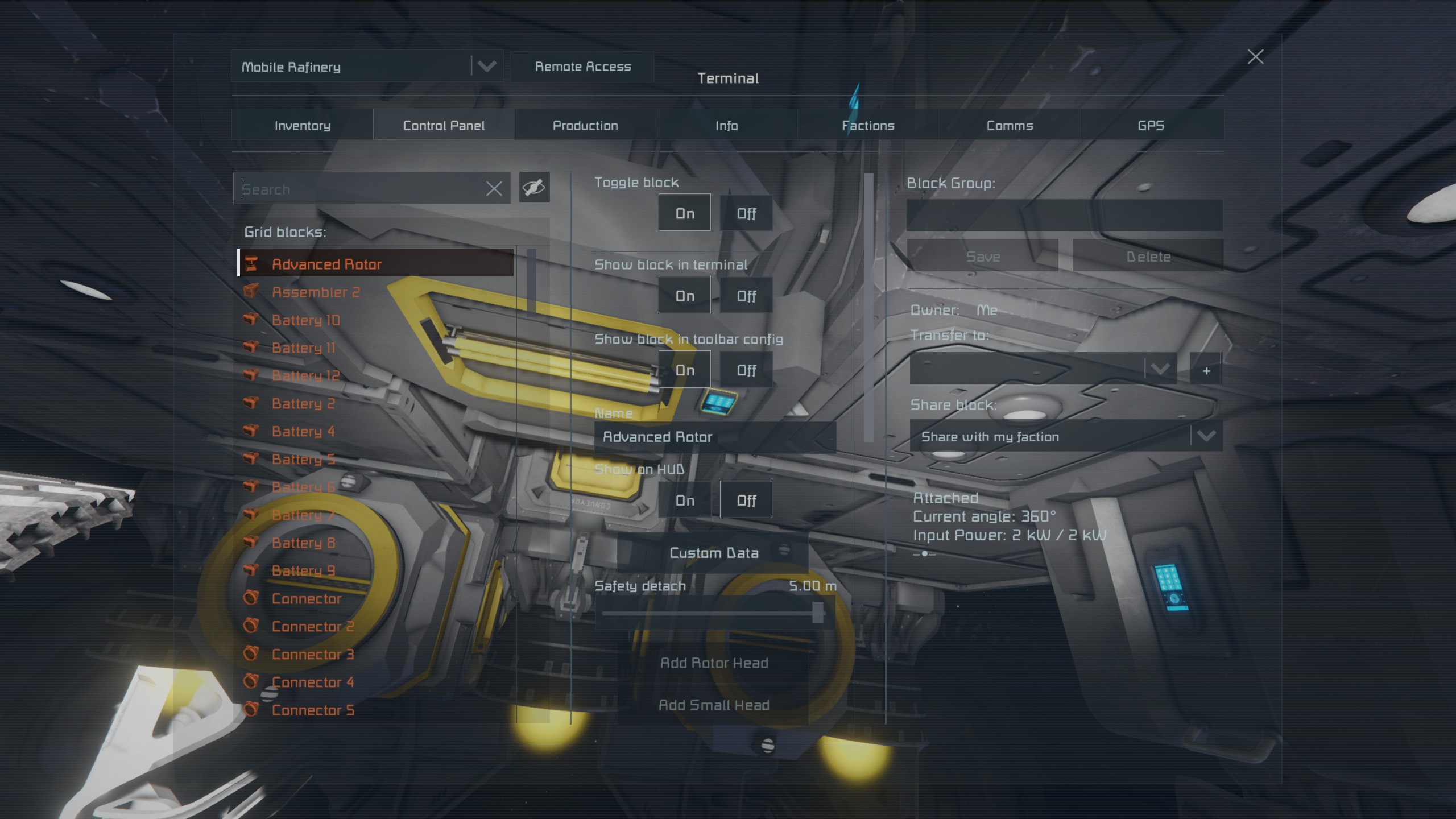 When opening Control Panel of piston head it opens Advanced Rotor instead of current piston panel. When grinding the Rotor it opens Assembler menu.