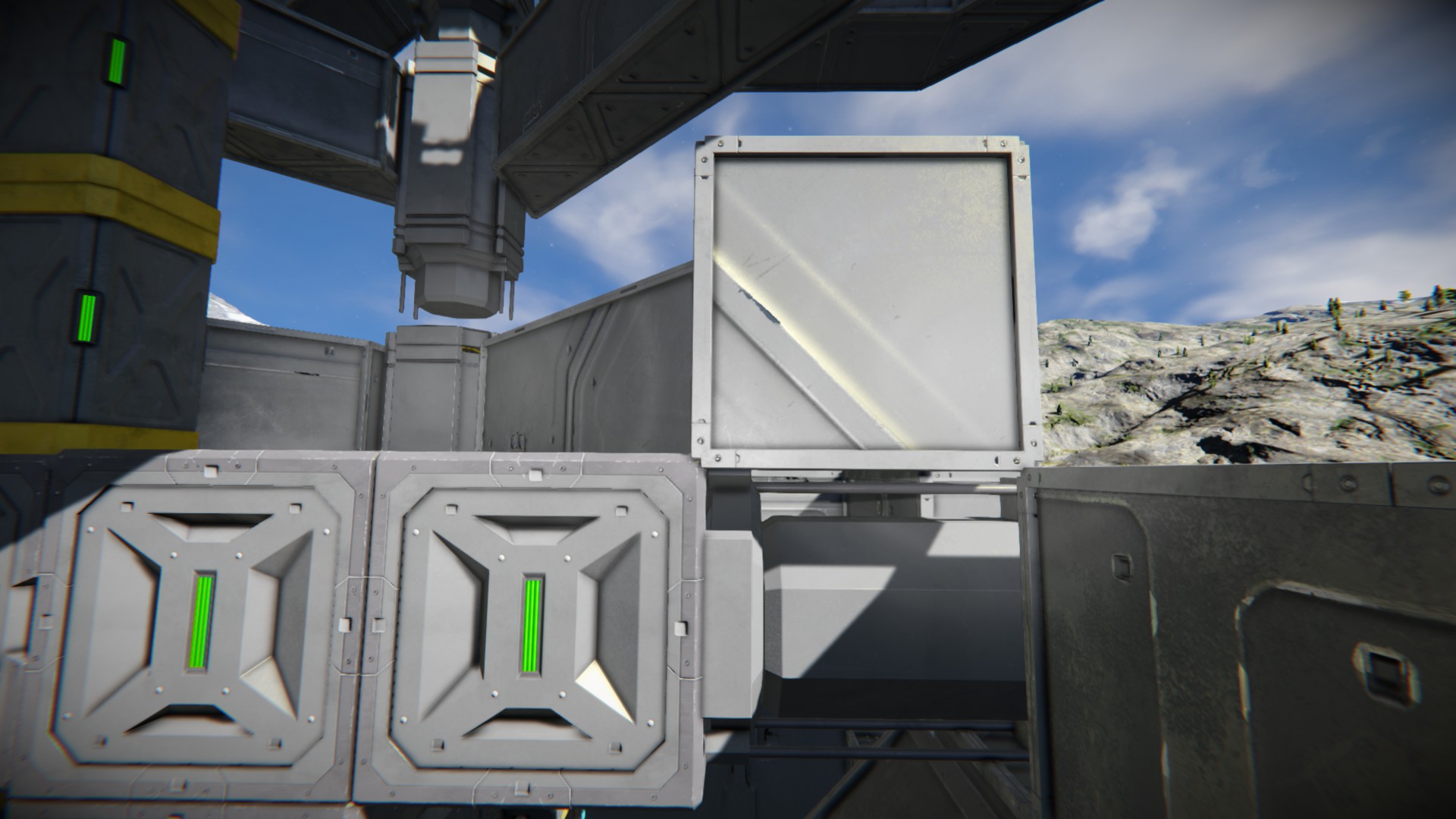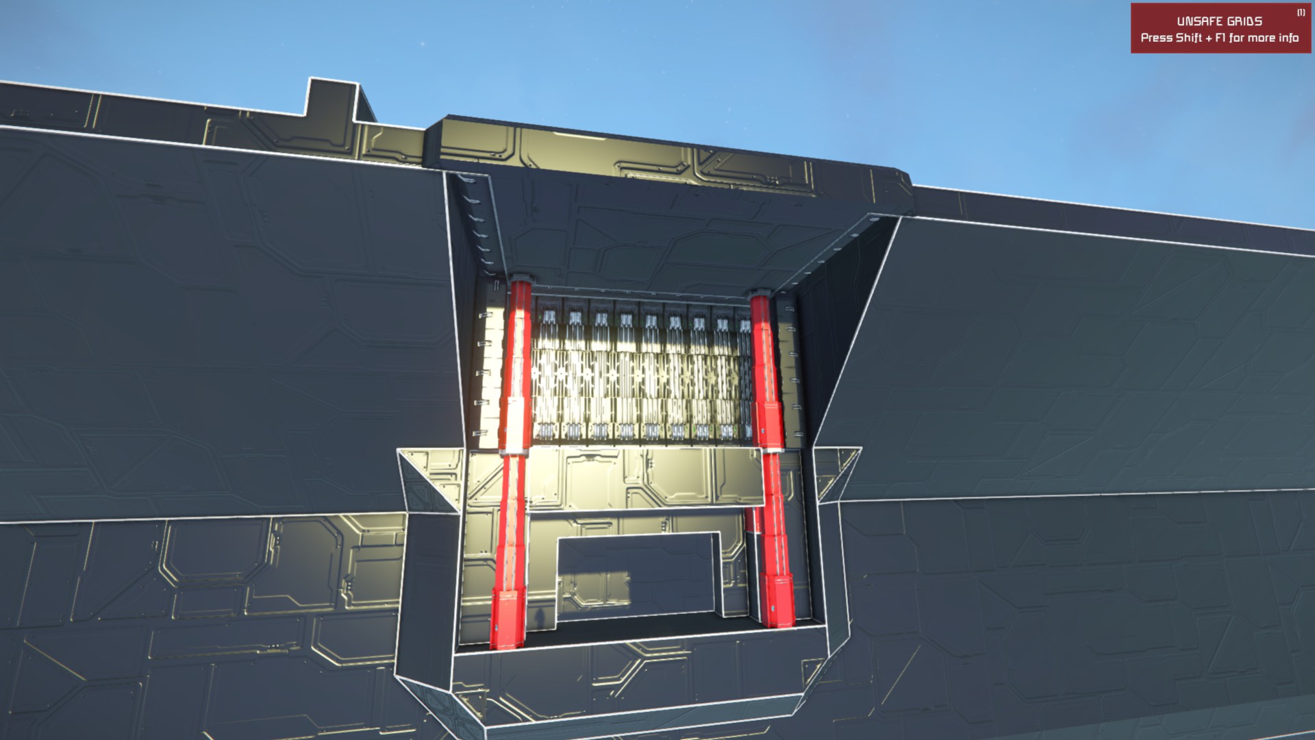 • Remove every block of any subgrid near the main grid. This means that I cannot achieve the look I wanted, and the piston system becomes either too bulky or too exposed. Even blast doors have this effect in my case.