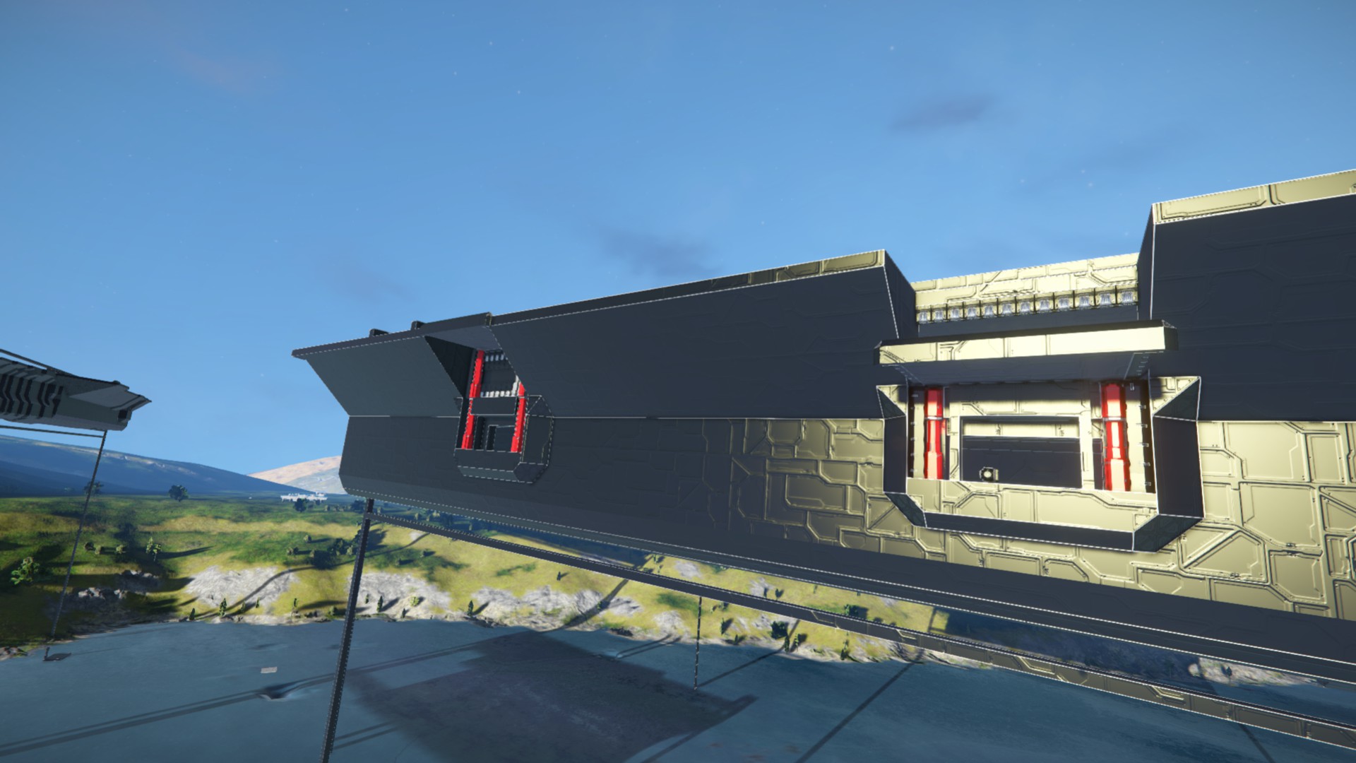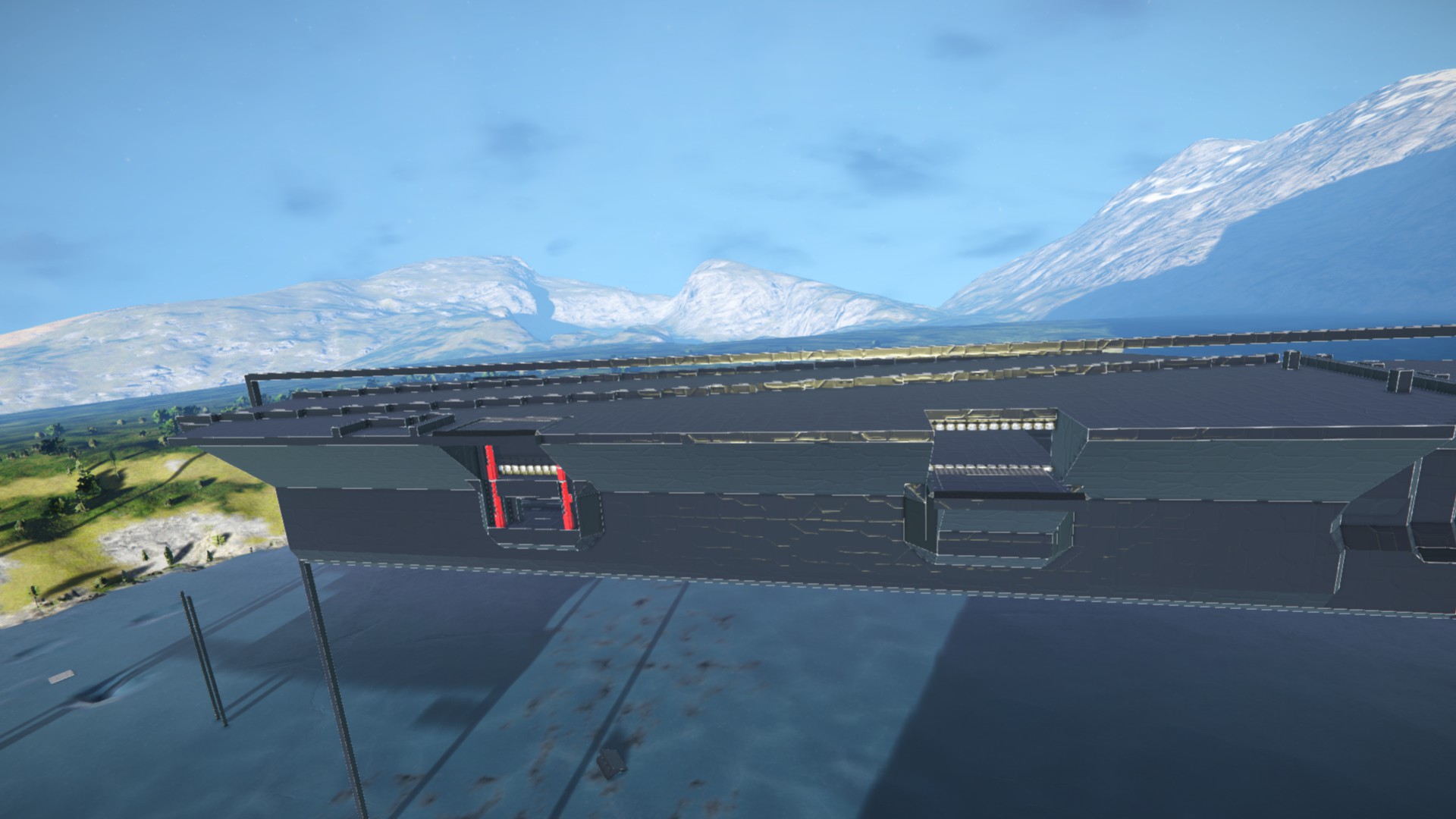 However, to achieve this "natural" look, the elevator floor has many blocks touching the main grid. This is not a problem on the ship I built and the elevator is able to move without an issue.