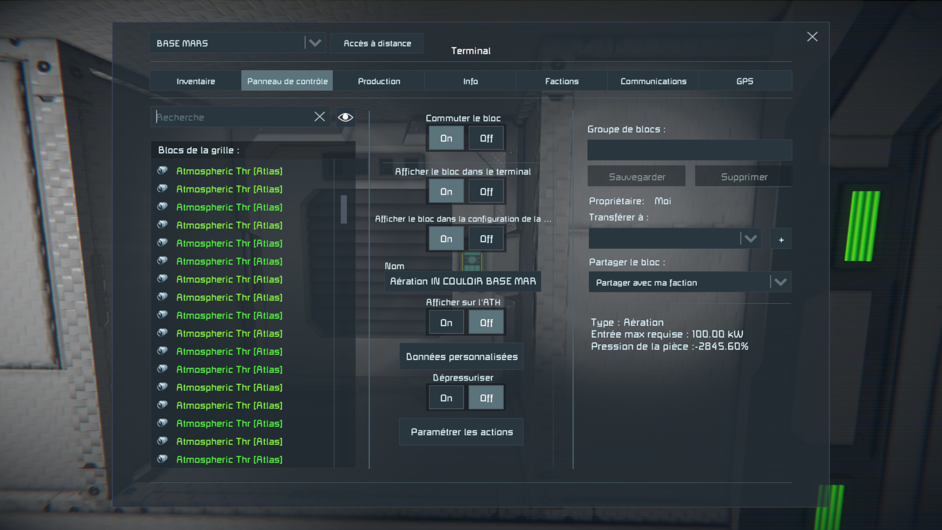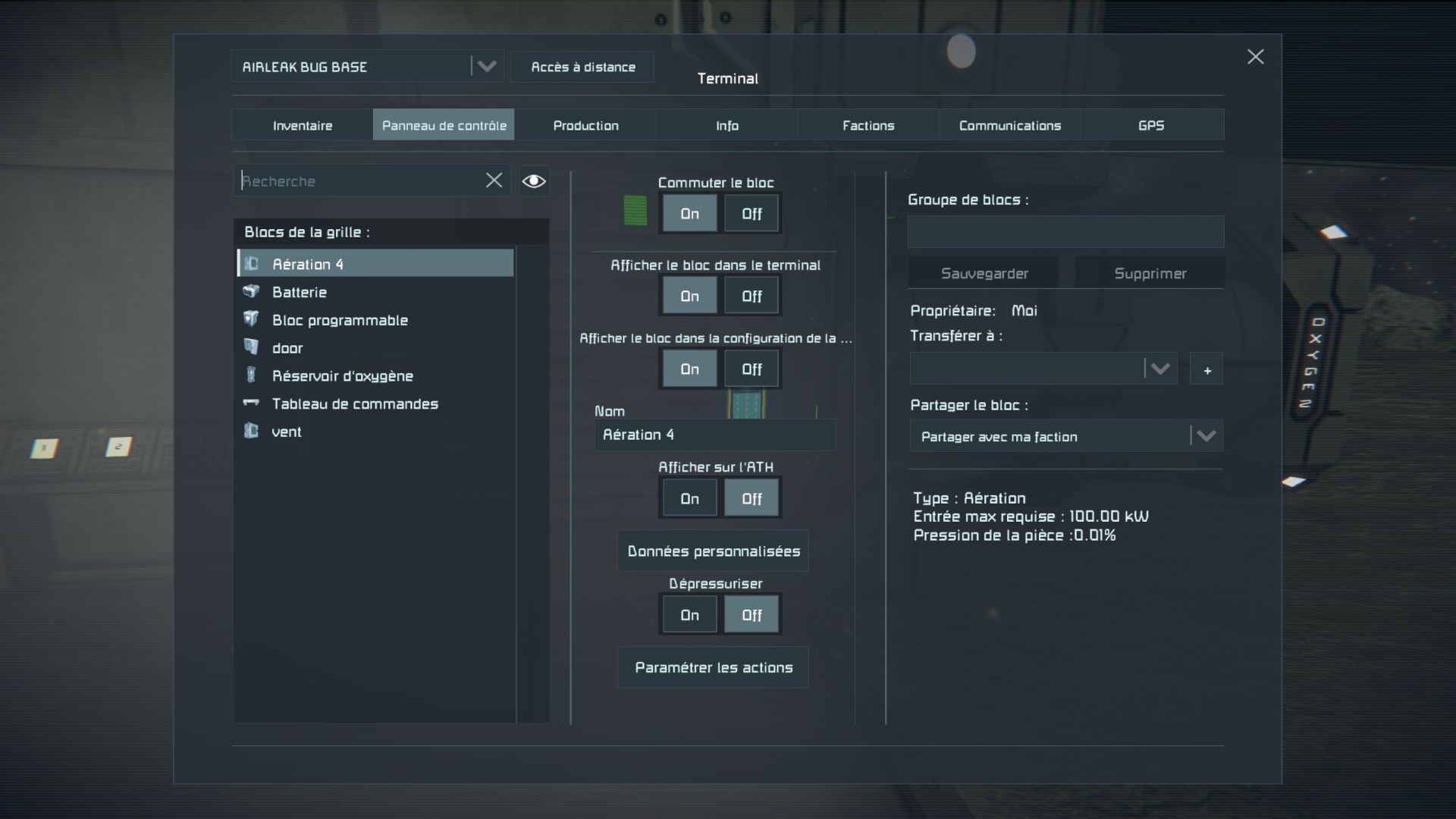- Also, the vents will enter into some weird state. Sometimes they will have very low pressurization speeds (like 0.01 % every second), but still working. Another time, they will just stay yellow, without pressurizing the room. I even got some negative pressure states toying with this grid.