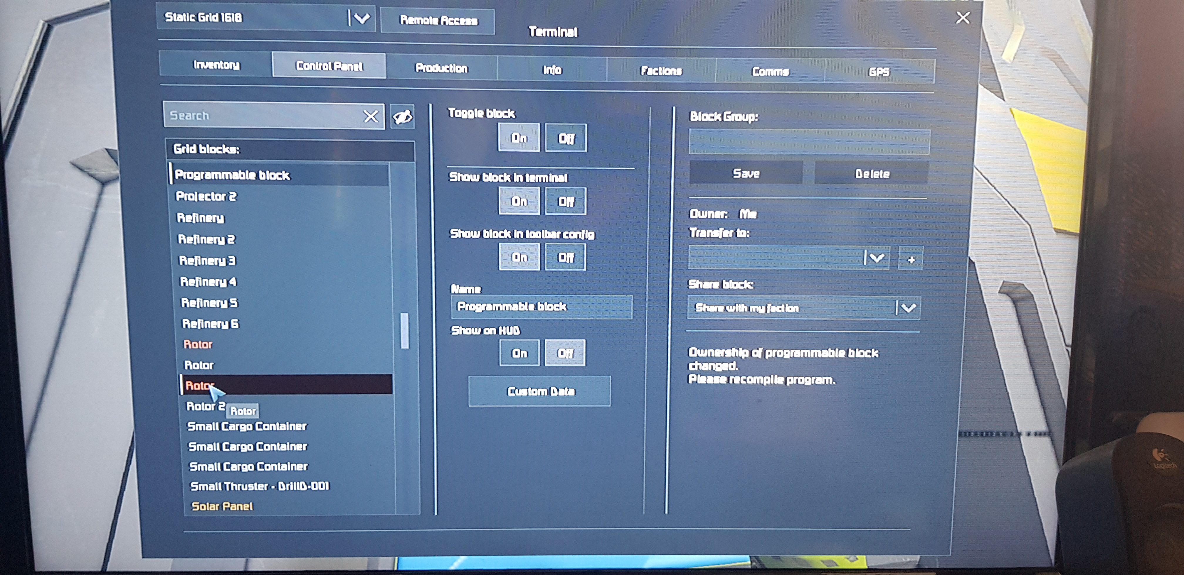 This is what is shows there is no edit button and it says ownership of programmable block changed please recompile program.